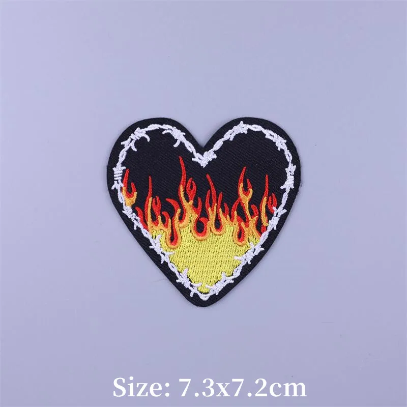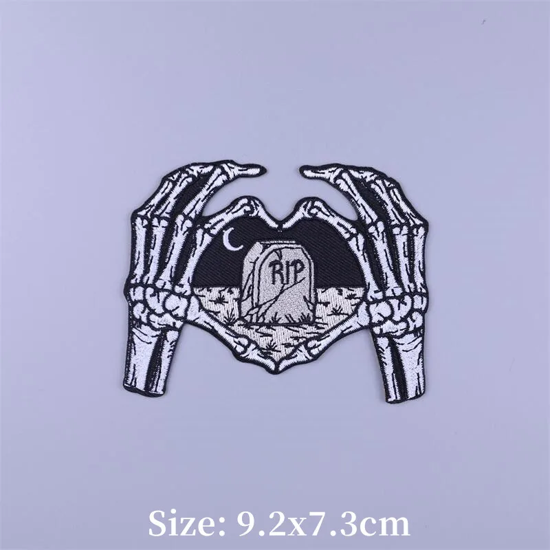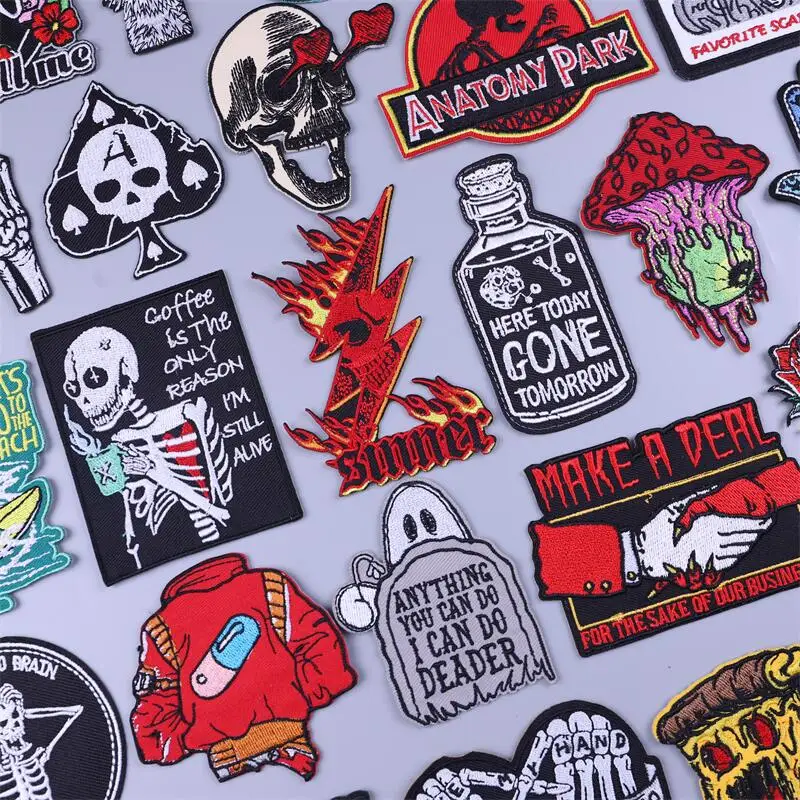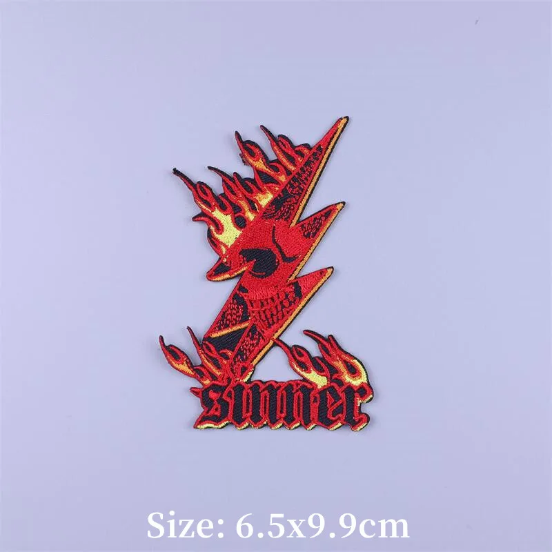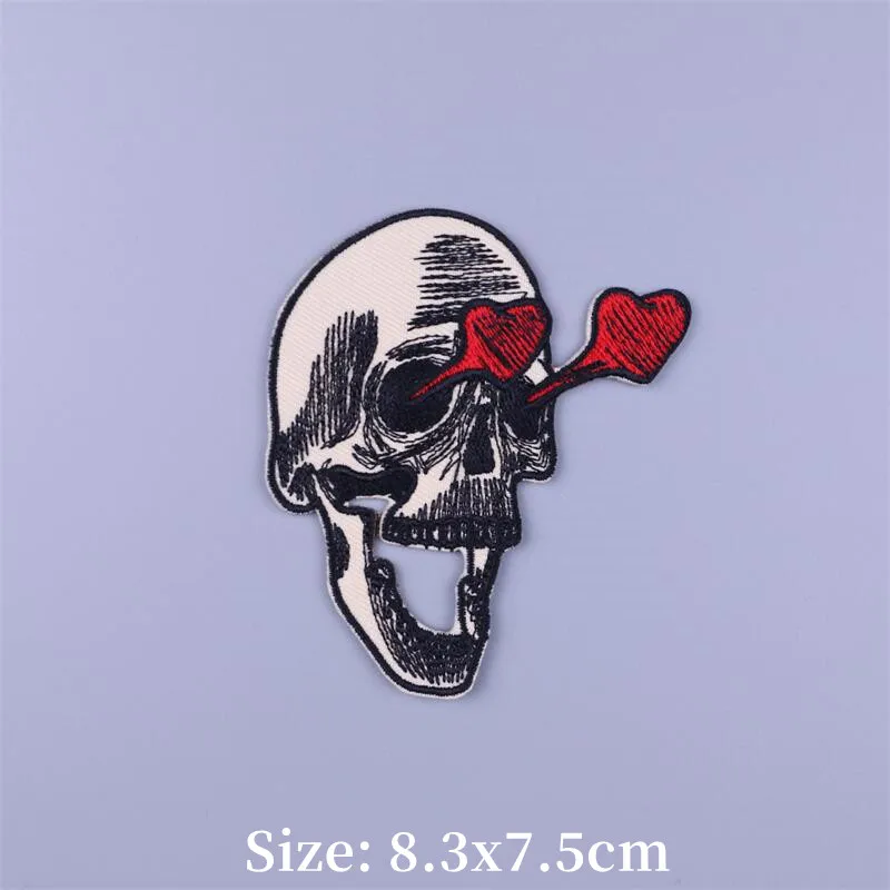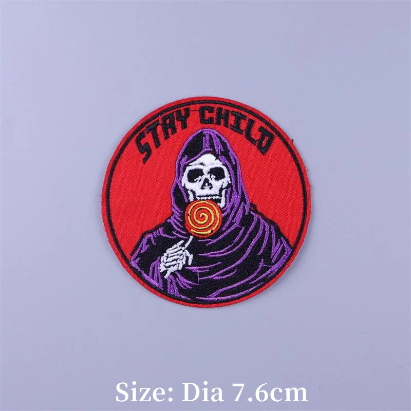 Parches termoadhesivos bordados con fuego, parche bordado Fusible de calavera Punk para ropa, parches de rayas Hippie DIY