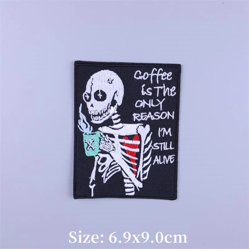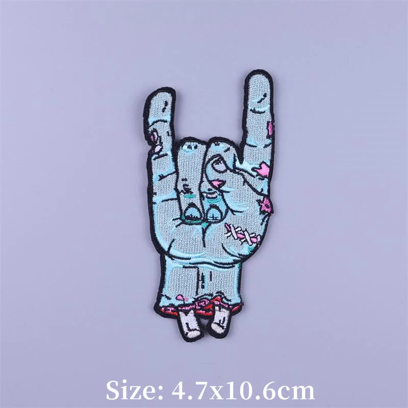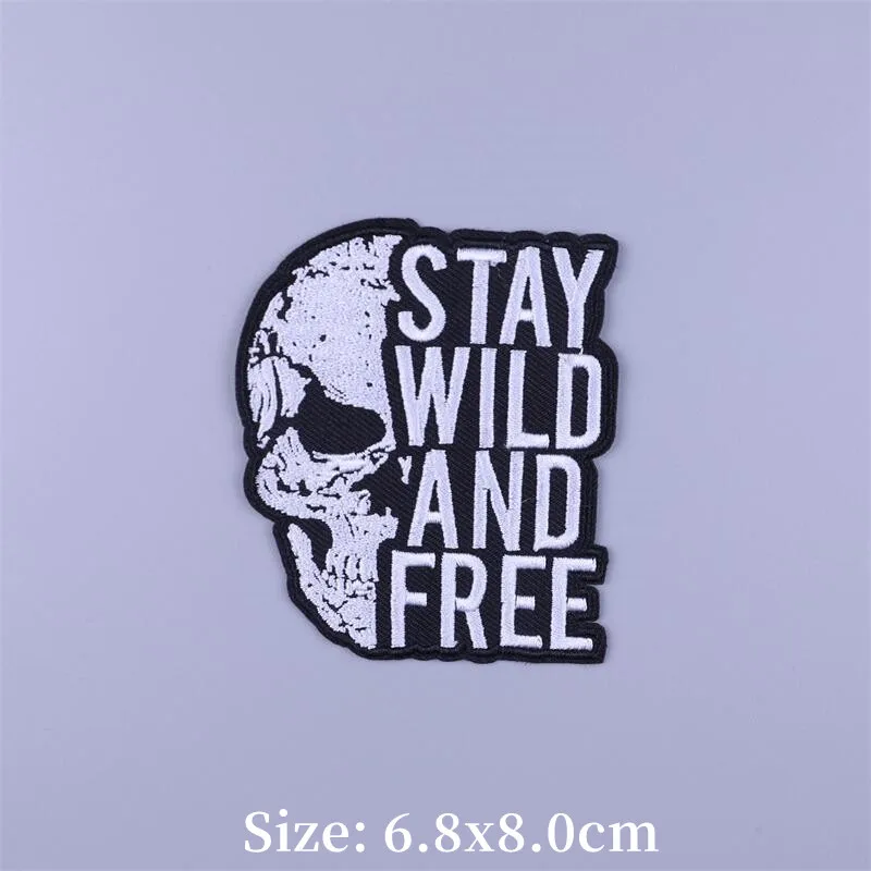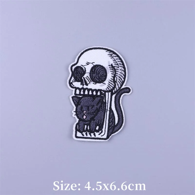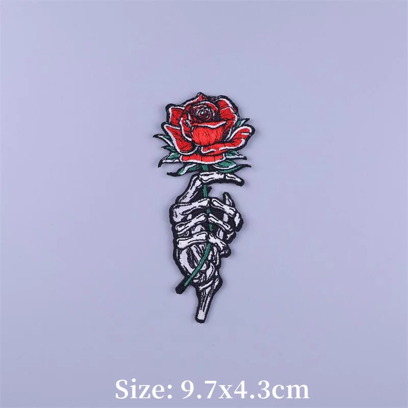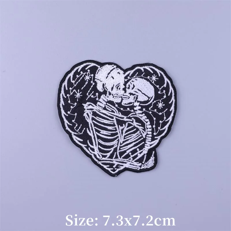 Parches termoadhesivos bordados con fuego, parche bordado Fusible de calavera Punk para ropa, parches de rayas Hippie DIY