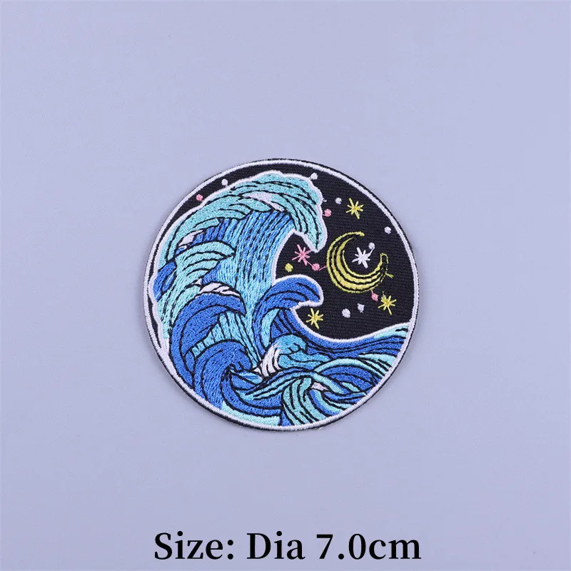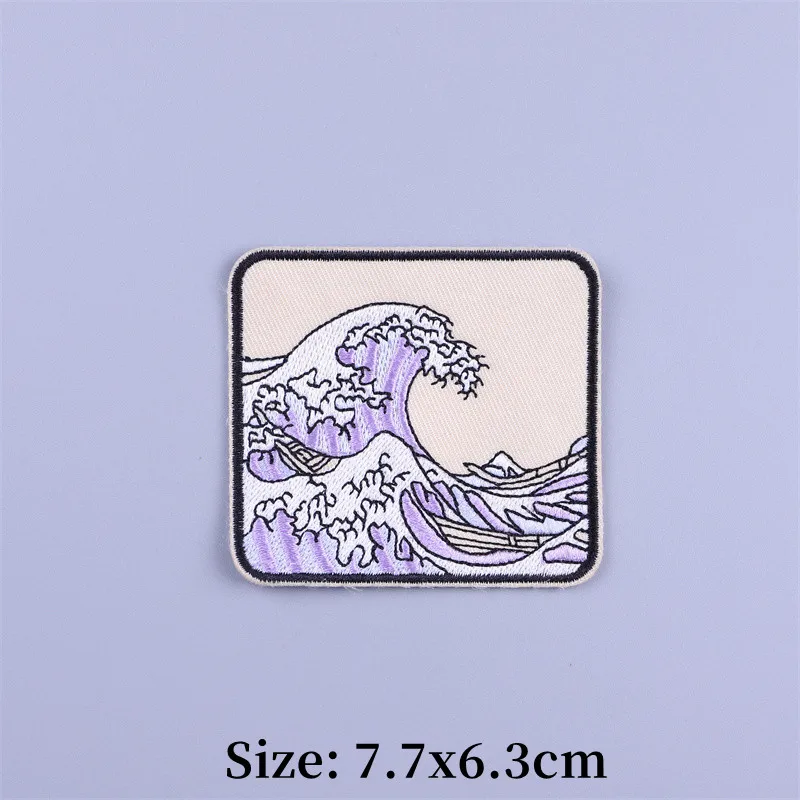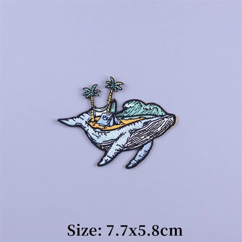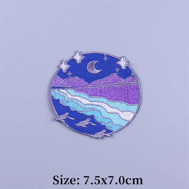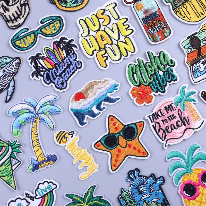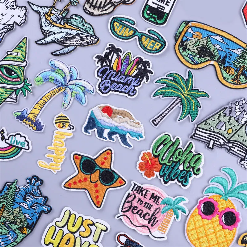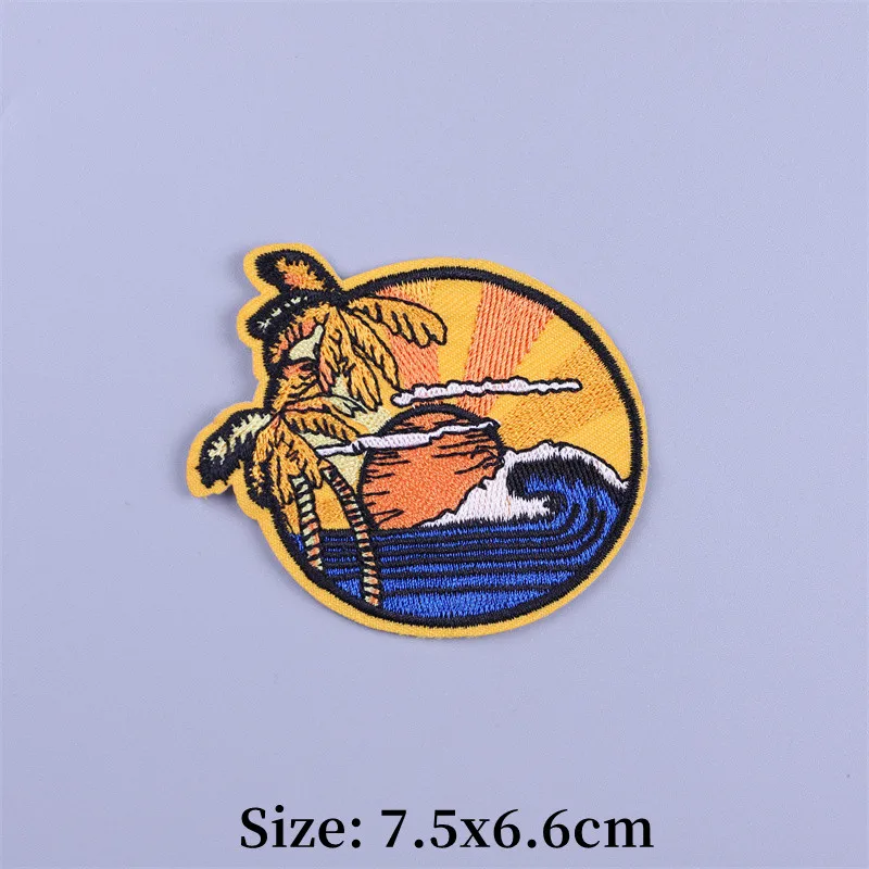 Parches termoadhesivos para bordado de paisaje de playa, parche para ropa de paisaje, mochila con plancha, apliques fusibles de tela