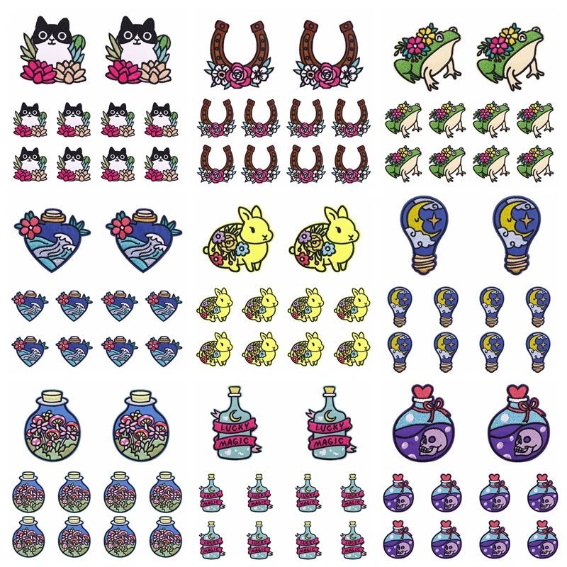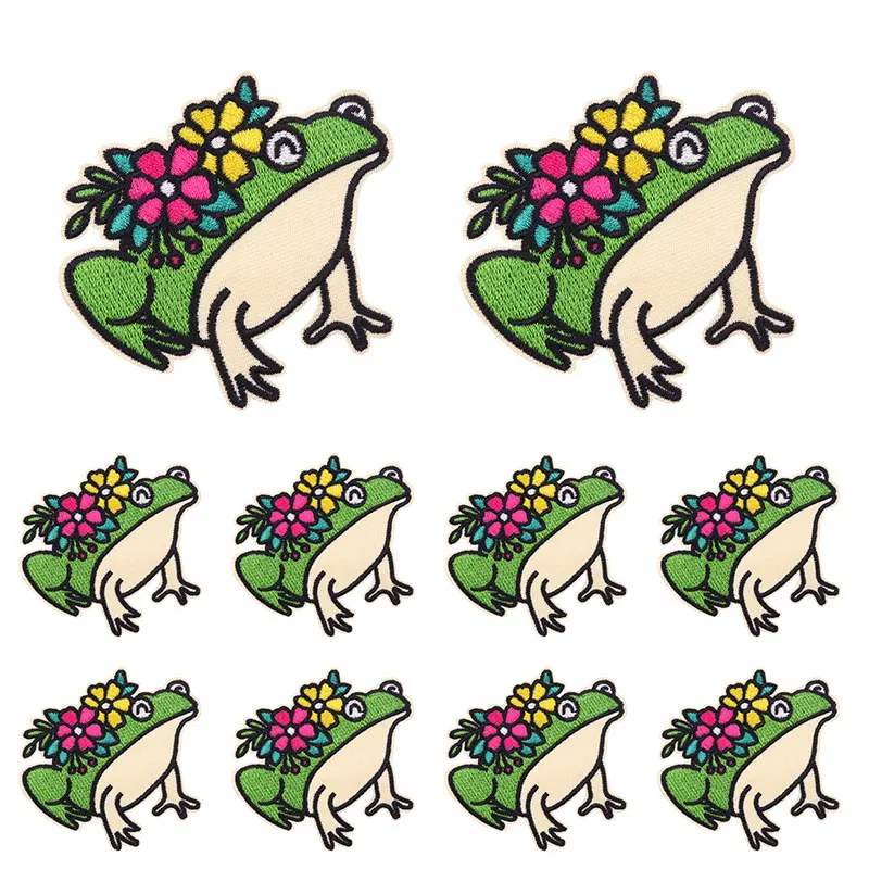Parches termoadhesivos con dibujos de animales para planchar, pegatinas con dibujos de animales para planchar en la ropa, bordado de rana, conejo, 10 piezas