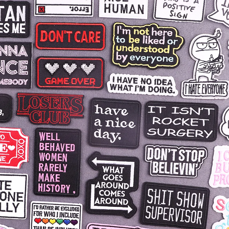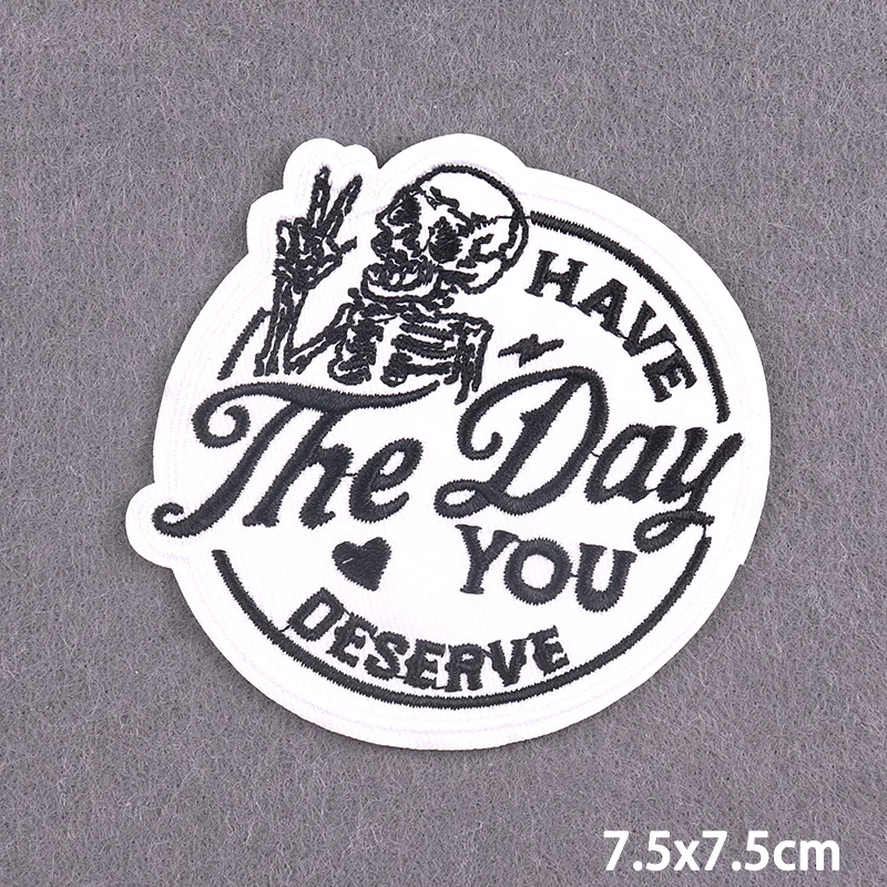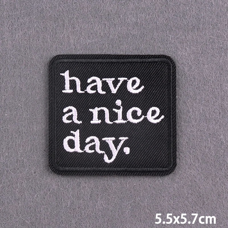 Parches termoadhesivos con letras blancas y negras para planchar en la ropa, parches bordados para tener un buen día, sombrero aplique para/Jean