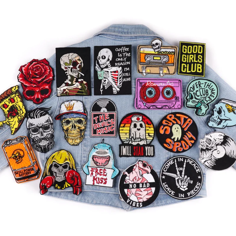 Parches termoadhesivos para planchar en la ropa, bordado de Calavera, Club de música, Rock, Punk, Animal