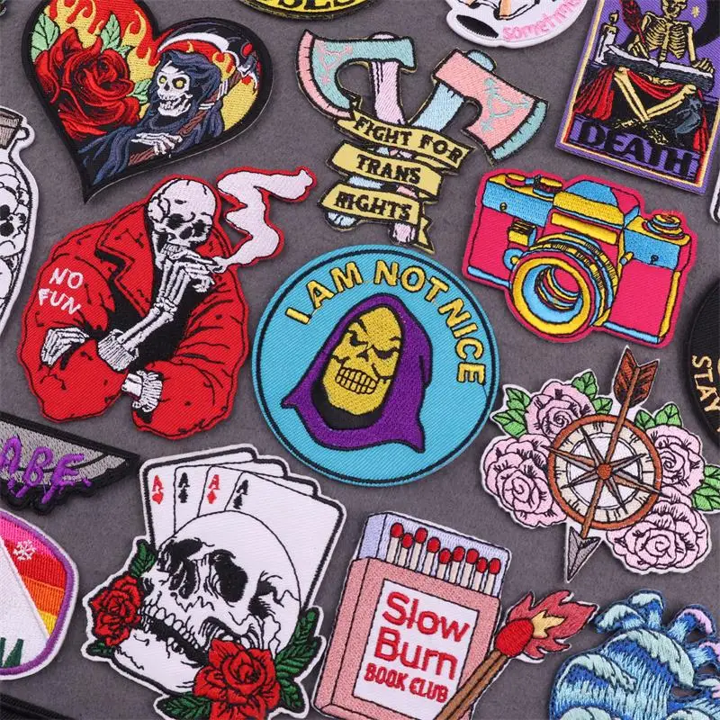 Parches termoadhesivos para planchar en ropa, bordado Fusible de póker, Hip Hop, Calavera, decoración, coser