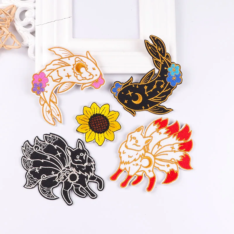 Parches termoadhesivos para planchar en ropa, conjunto de 5 unidades de parches bordados de girasol para ropa DIY