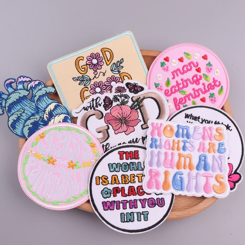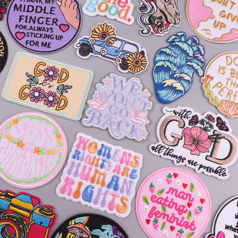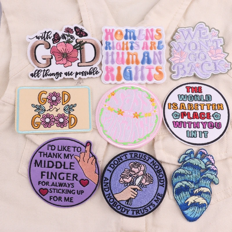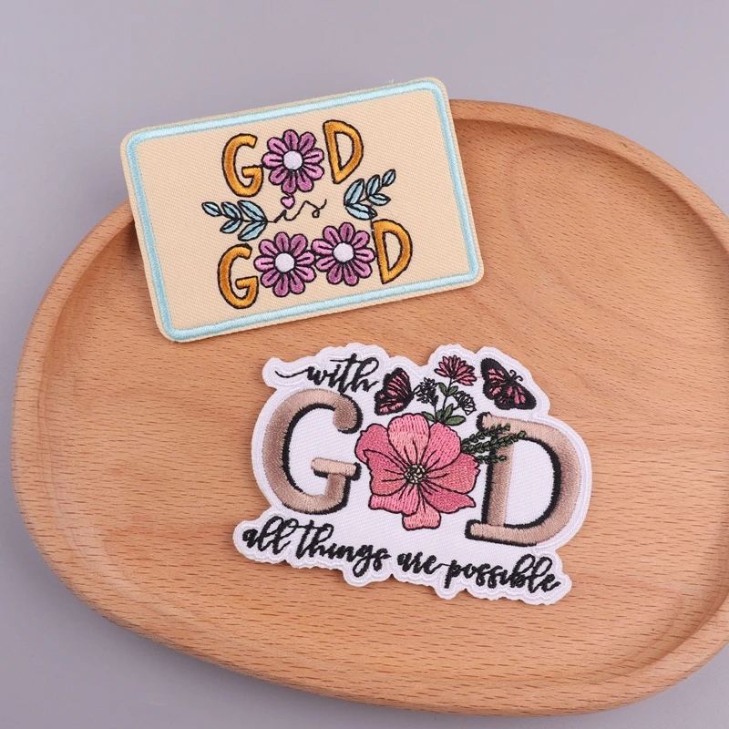 Parches de hierro con eslogan positivo, parche termoadhesivo para ropa, parche bordado God Good para sombrero/Jeans, apliques de personalidad