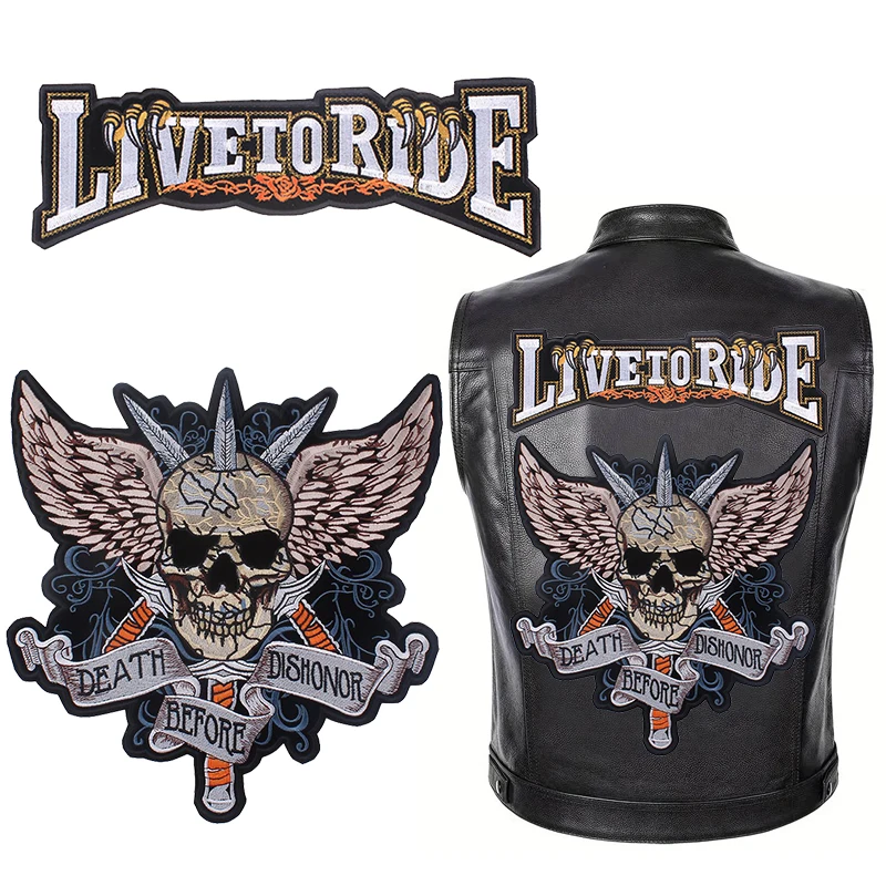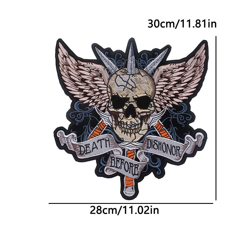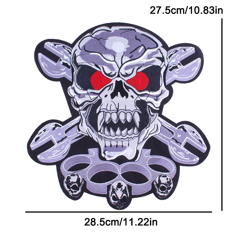 Parche trasero grande para motocicleta y Club, parches termoadhesivos para ropa, parche termoadhesivo en chaqueta, parches bordados DIY con calavera Punk