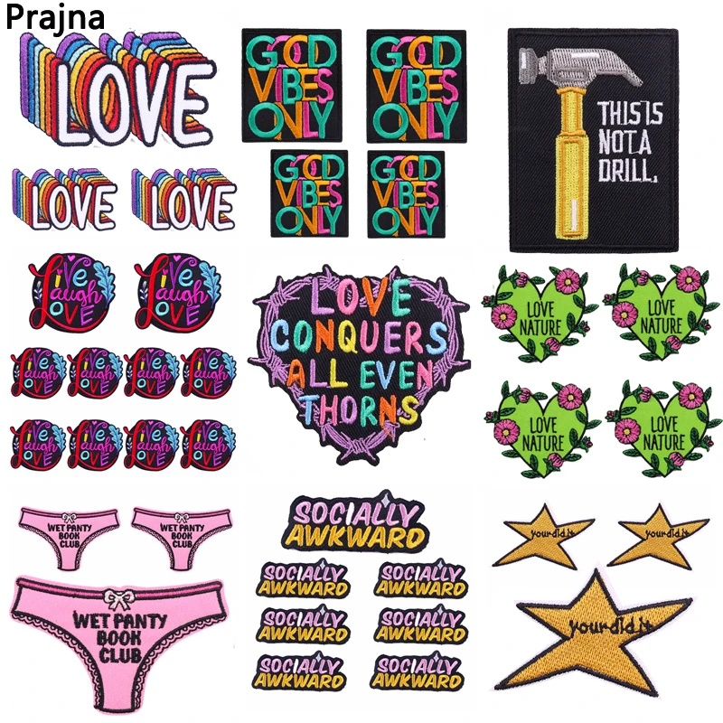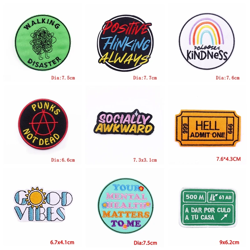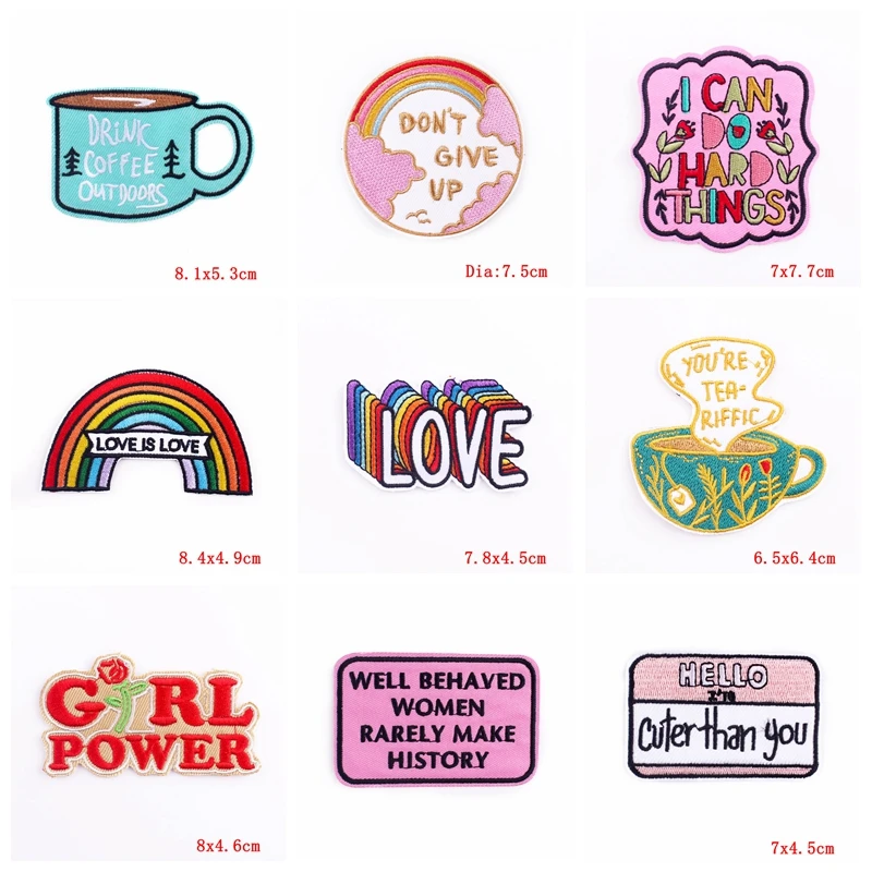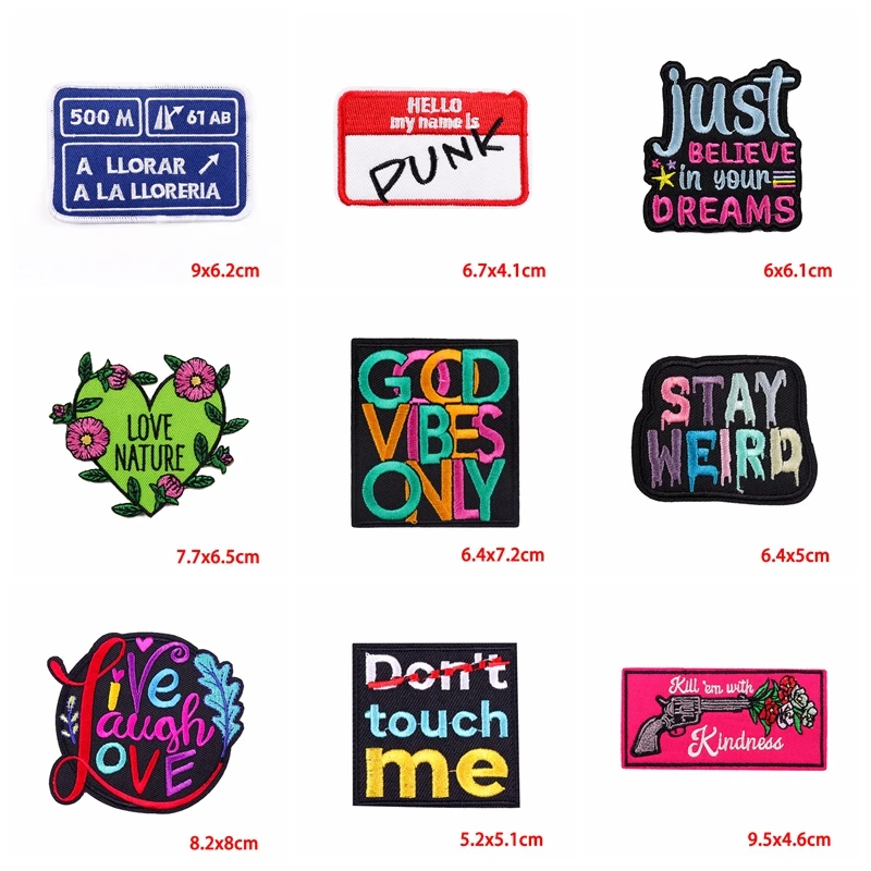 Parches termoadhesivos para planchar ropa, parches bordados de dibujos animados, letras, individualidad, bricolaje, 10 unids/lote