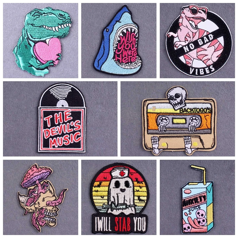 10 unids/lote de parches termoadhesivos para ropa de animales Hippie, pegatinas para ropa, insignias de rayas de calavera DIY, parches para planchar para chaqueta