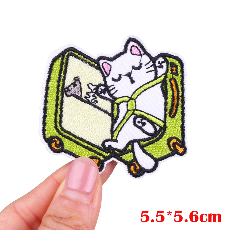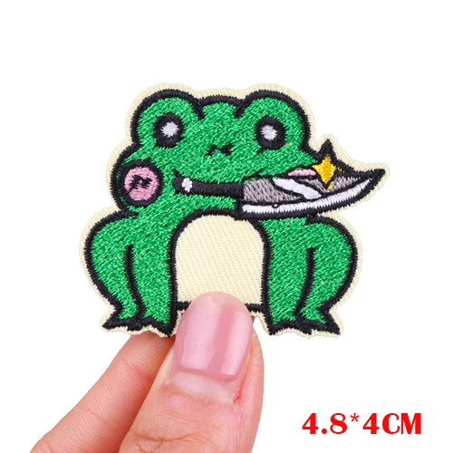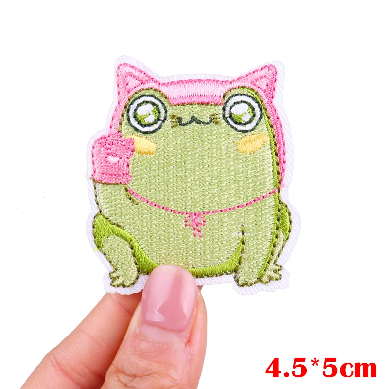 Parches termoadhesivos para ropa, bordado de animales, gato, Rana, chaquetas, Jeans, coser, dibujos animados
