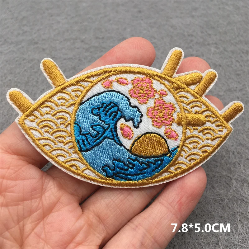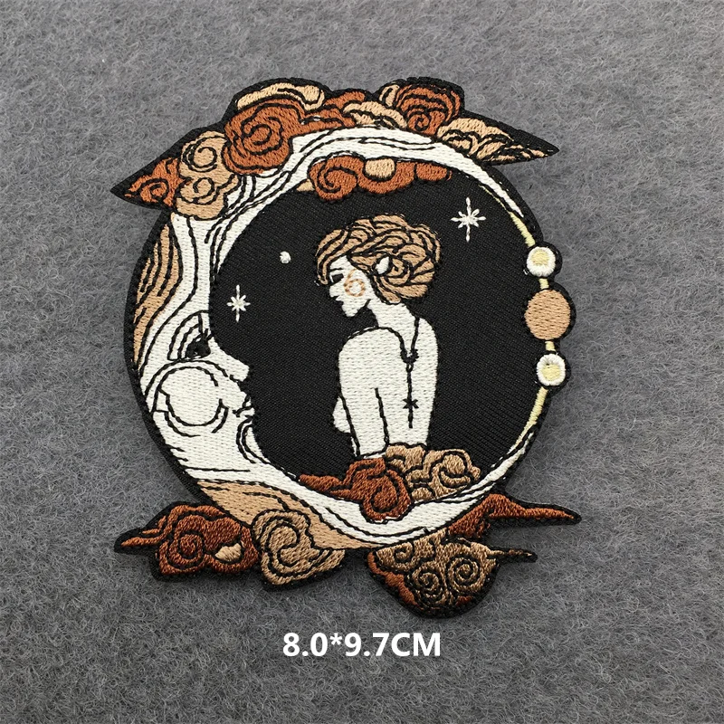 Parches termoadhesivos para ropa de paisaje bordados de costura del espacio exterior aplicaciones Hippe planchado parche divertido
