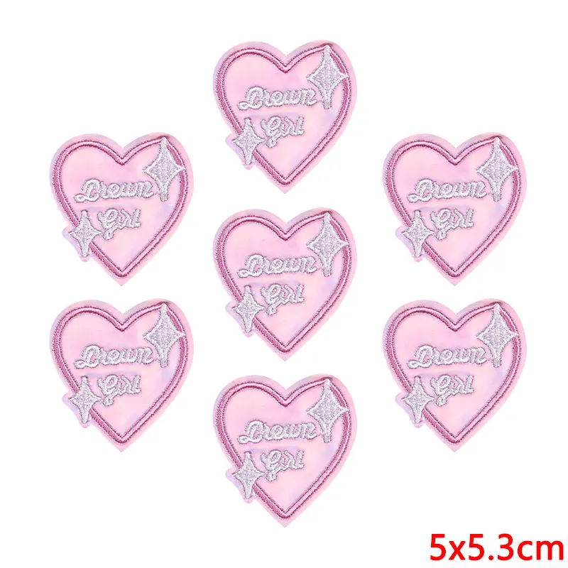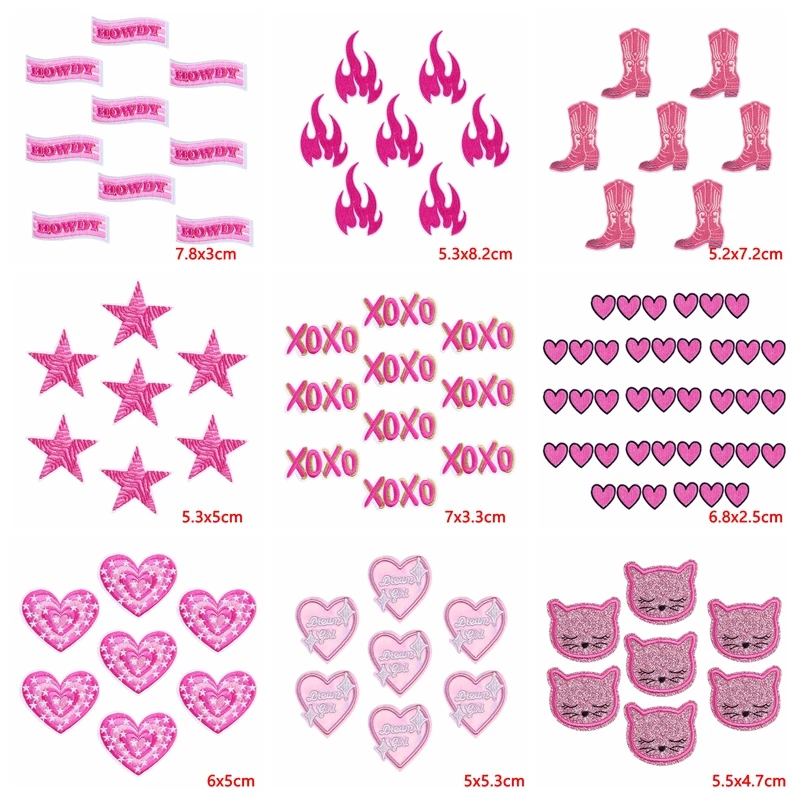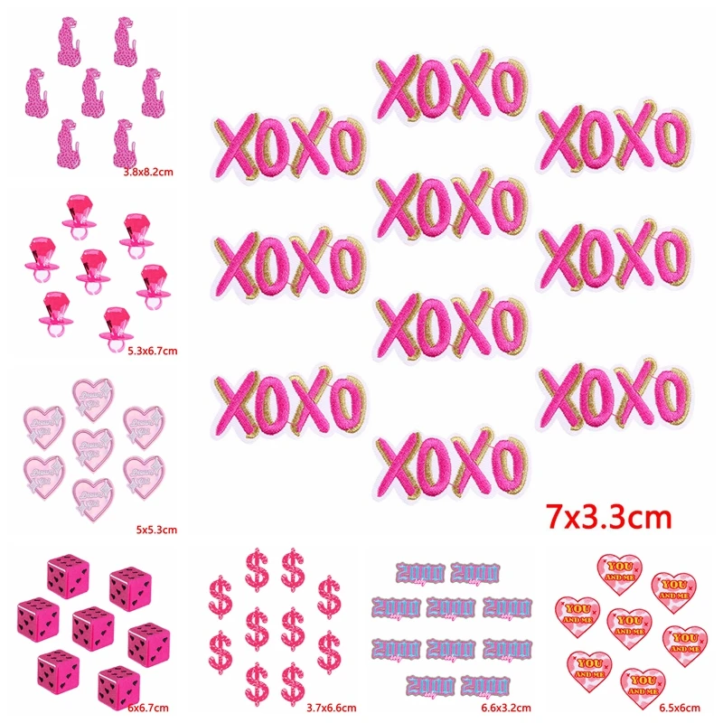 10 unids/lote, venta al por mayor, nuevos estilos YK2, parches para planchar para ropa, parche termoadhesivo para ropa, parche bordado XOXO Rosa DIY
