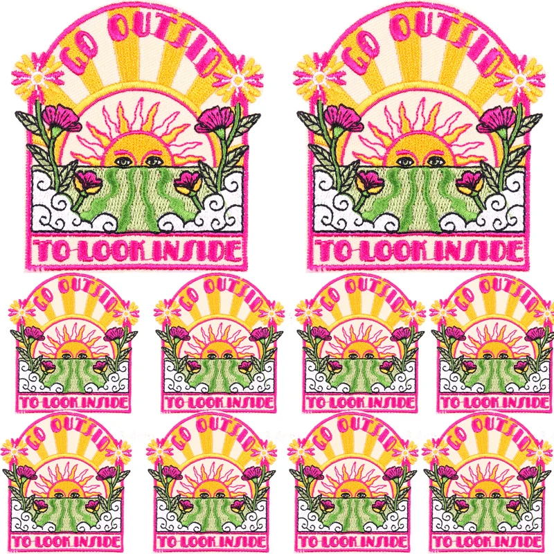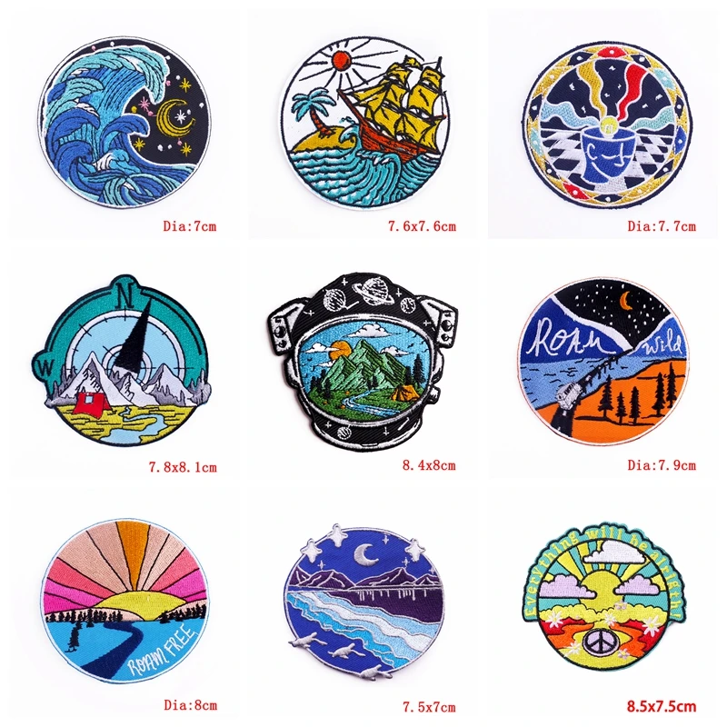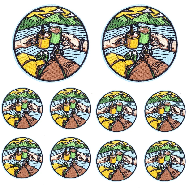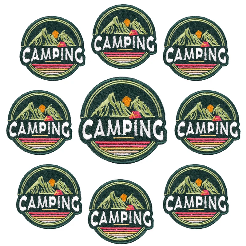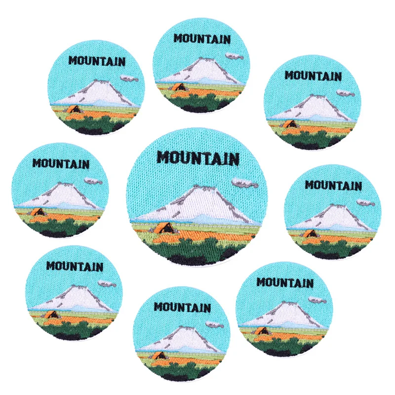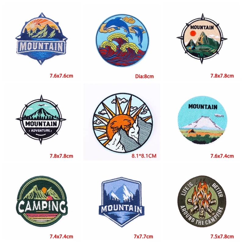 Parche Enbroidey de aventura de montaña de 10, parches de dibujos animados/sol para planchar para ropa, parches termoadhesivos, pegatina para coser chaquetas