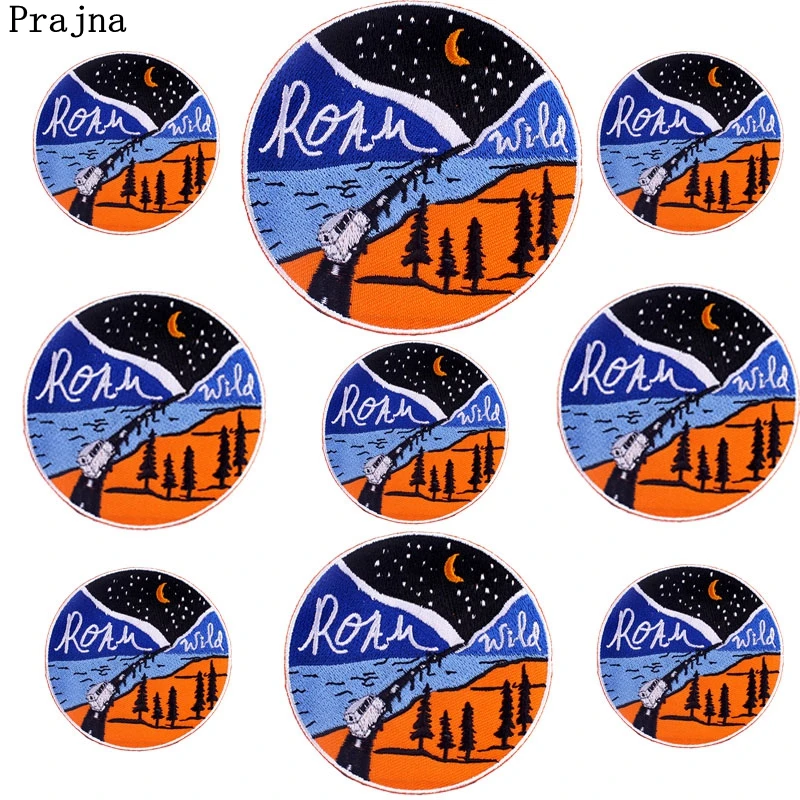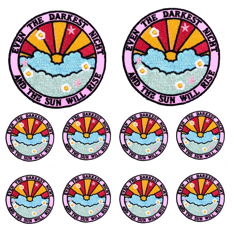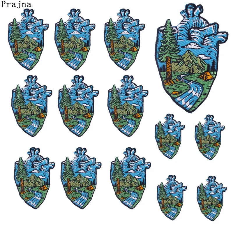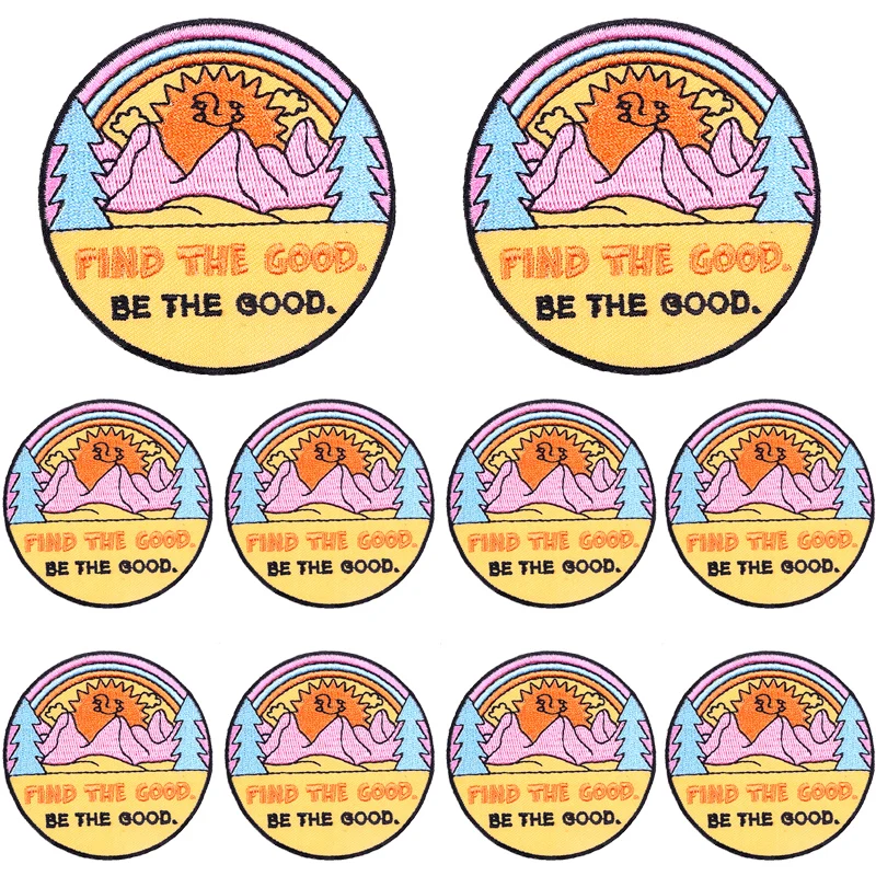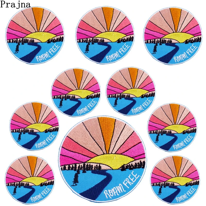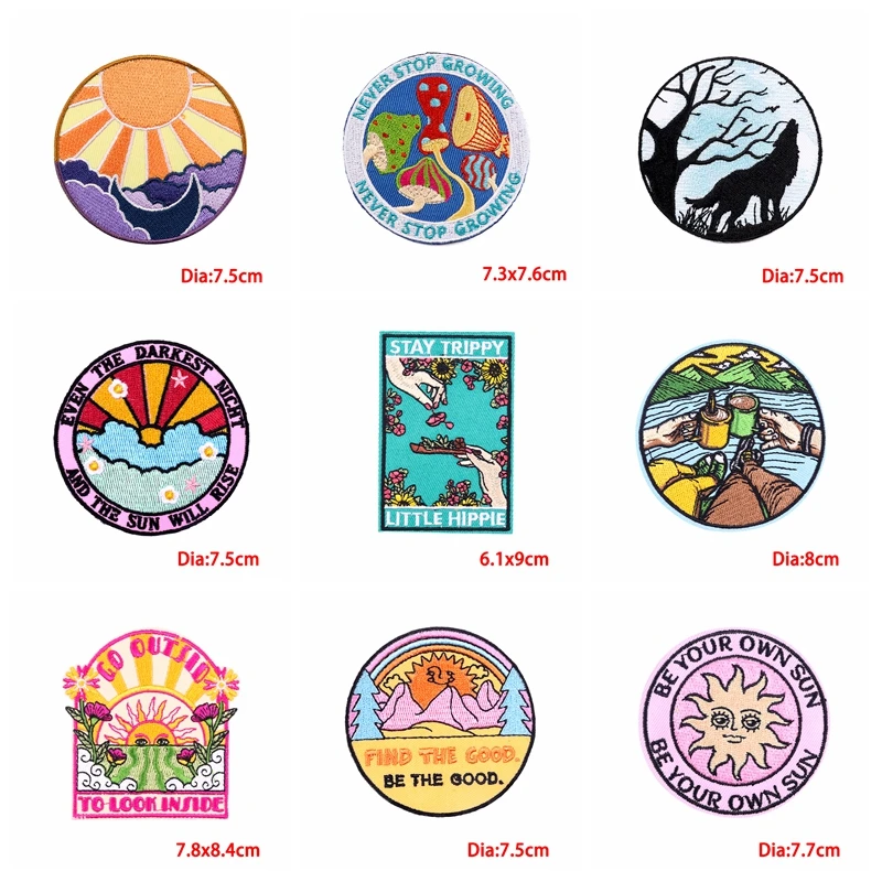 Parche Enbroidey de aventura de montaña de 10, parches de dibujos animados/sol para planchar para ropa, parches termoadhesivos, pegatina para coser chaquetas
