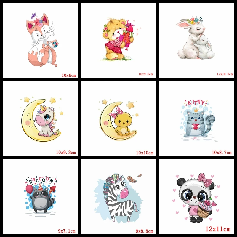 Parches para planchar lindos animales pequeños, unicornio, vacas, transferencia térmica para ropa, pegatinas, insignias de oso de dibujos animados, camiseta lavable DIYMOQ:1Tamaño: como se muestra en la imagen