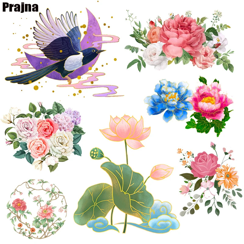 Parches de transferencia de calor de flores coloridas para ropa, pegatinas térmicas para planchar en ropa, apliques para camisetas