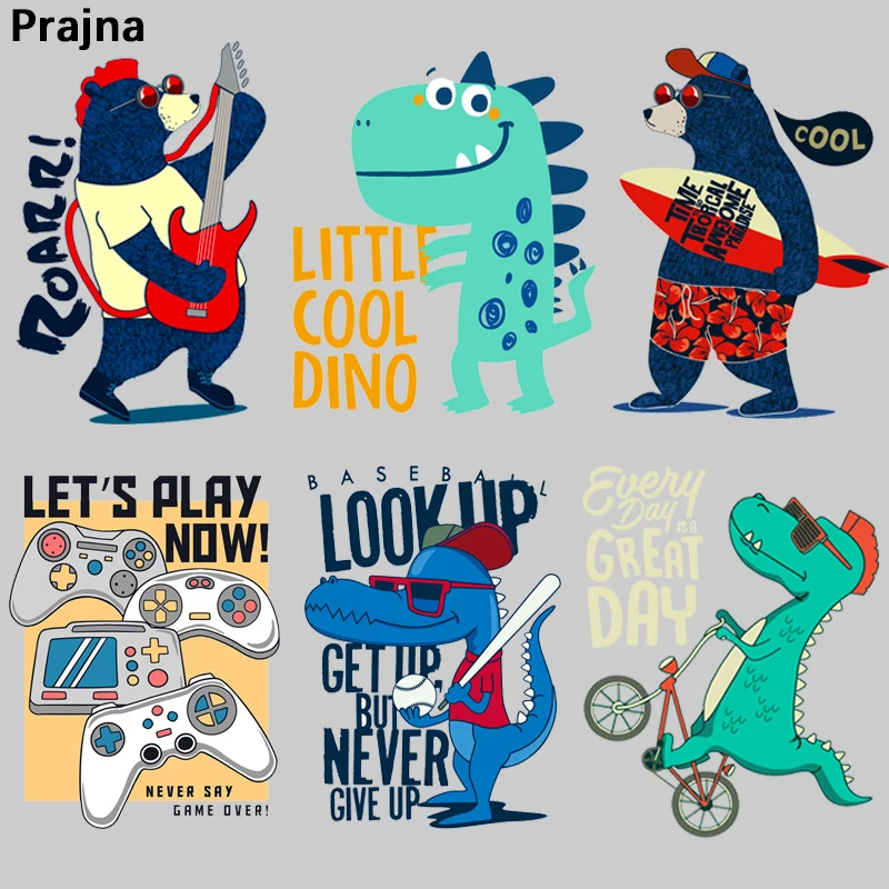 Parches de transferencia de calor de dinosaurio estilo roca Animal hierro en transferencia para ropa DIY pegatinas térmicas de animales de dibujos animados en la ropa