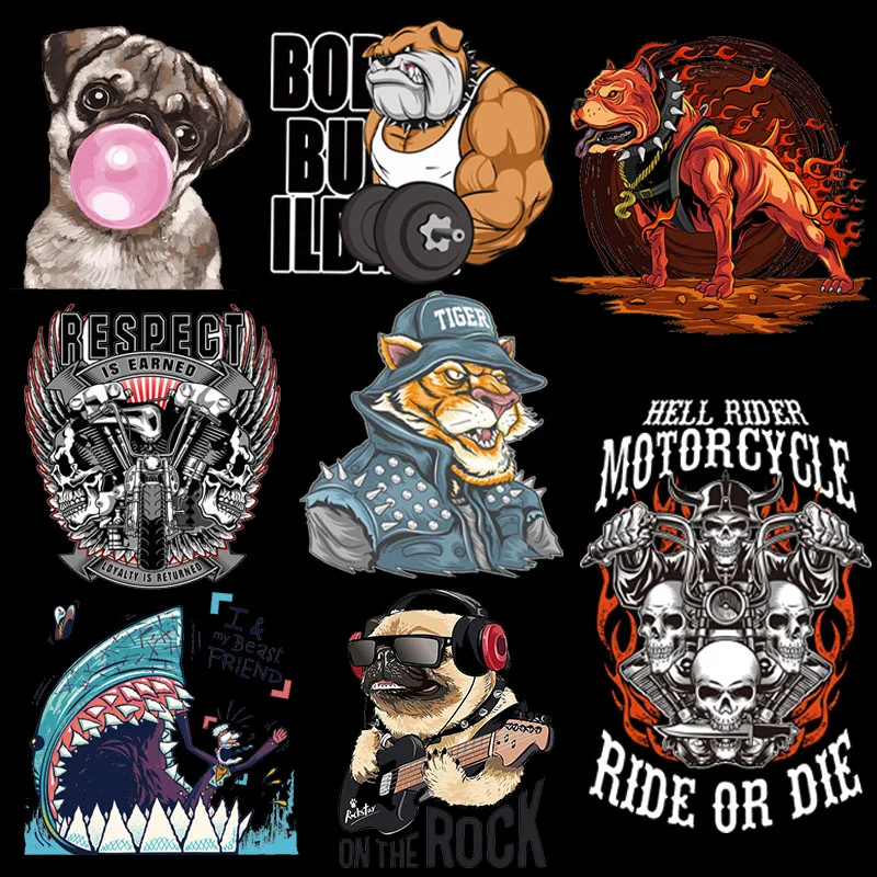 Parches de transferencia de hierro para ropa, apliques de motociclista, camiseta, transferencia de calor, pegatinas térmicas, músculos, Shar, Pei, perro