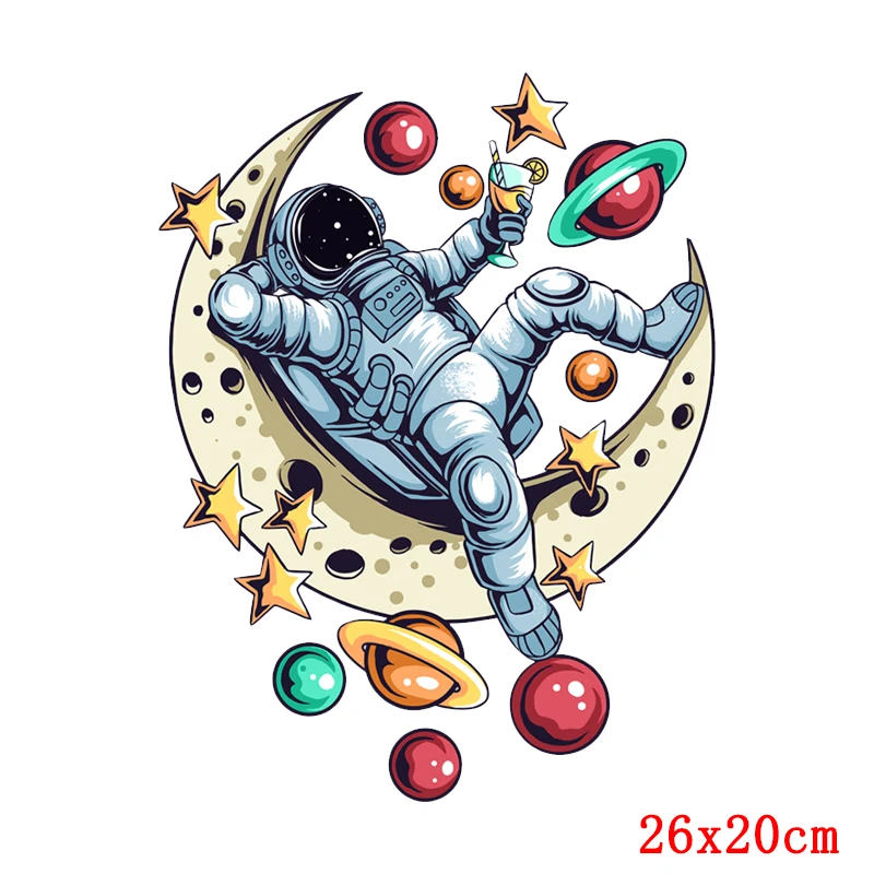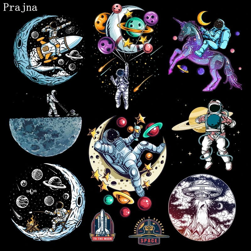 Parches de planchado DIY, astronauta espacial, Luna, Transferencia Térmica de calor, dibujos animados, parches de transferencia de hierro para ropa, aplique para camiseta