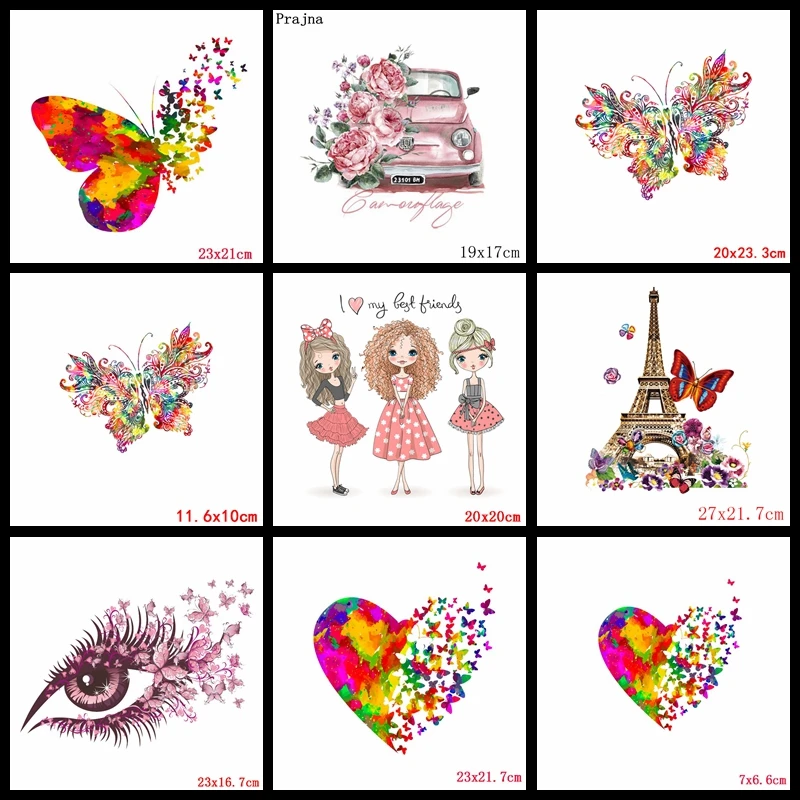 Parches de transferencia térmica de calor para ropa de mujer, parches de transferencia térmica de calor para zapatos de tacón alto DIY con transferencia de hierro de mariposa para chica a la moda