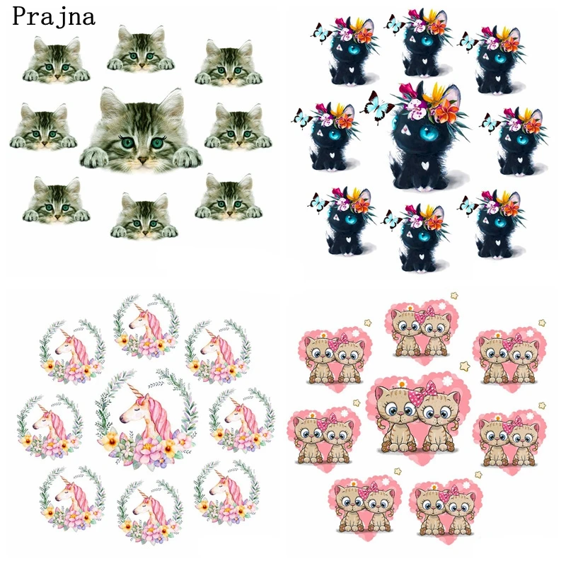 10 piezas al por mayor, aplicación de unicornio gato, parches de transferencia de hierro para ropa, pegatinas térmicas de transferencia de calor de animales de dibujos animados DIY