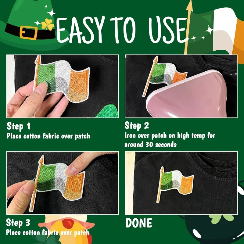 Parches de trébol de la suerte para carnaval del Día de San Patricio irlandés, apliques de hierro para coser, bolsos, zapatos, manualidades DIY, pegatina para ropa