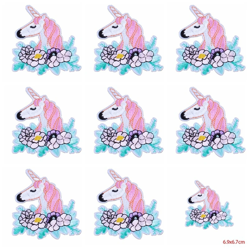 10 unids/lote parches de unicornio de dibujos animados para ropa lindos parches bordados de rayas de animales en ropa insignias de moda en la chaqueta