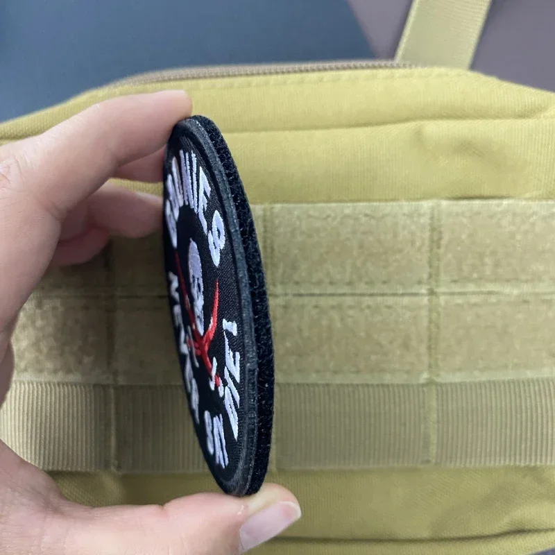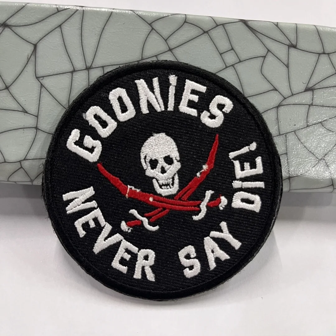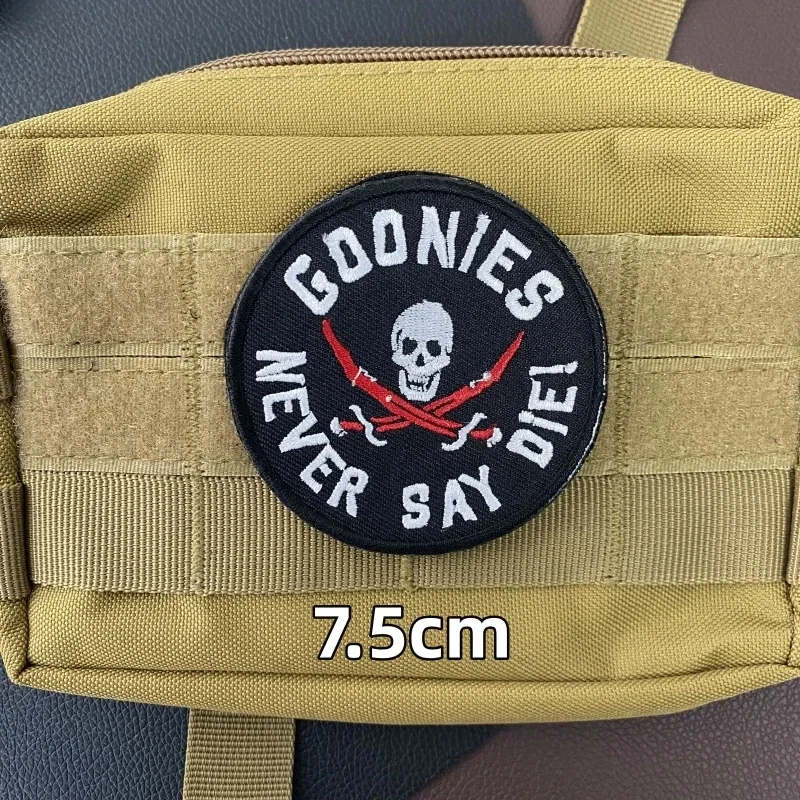 Parches de gancho y bucle bordados de calavera Never Say Diei para ropa, insignias tácticas de moral en pegatinas de mochila