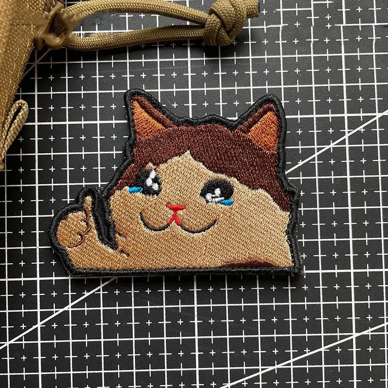 Parches de gancho y bucle bordados de gato alentador, brazalete, insignia de moral, pulgares hacia arriba, accesorios tácticos, pegatinas para mochila