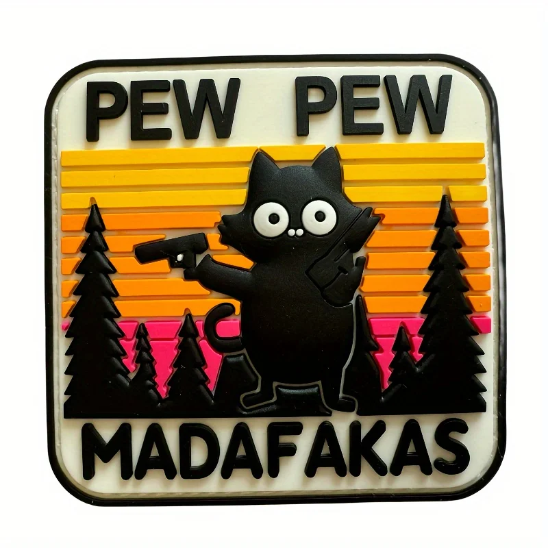 Parches Velcro Mochila TáCticos De Bordados 1 unidad luminosa "PEW PEW CAT" gato negro con pistolas parche de PVC Velcros táctico gancho y bucle-insignia de moral militar para mochila Molle