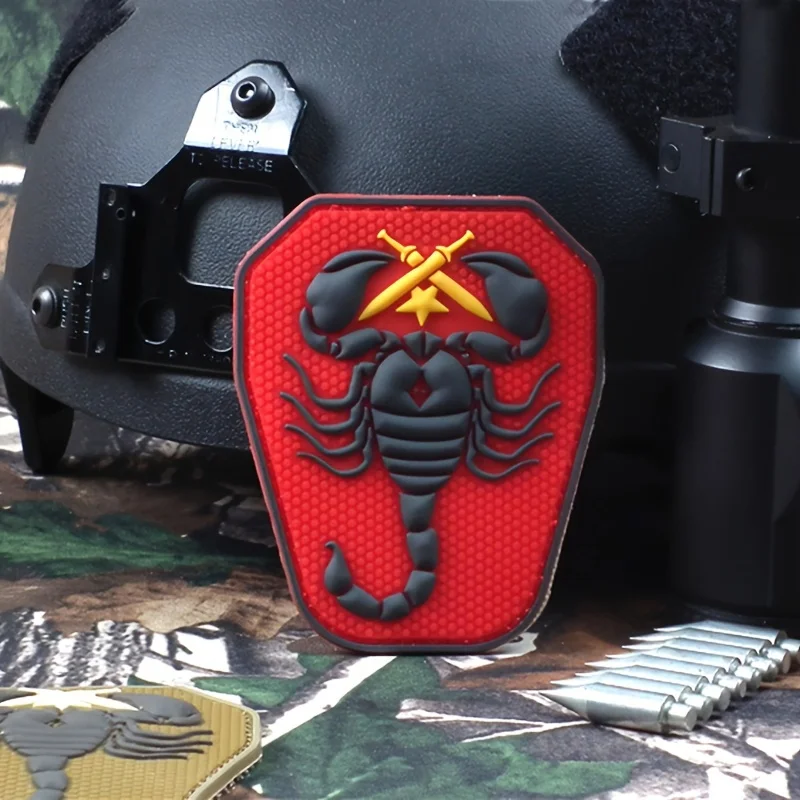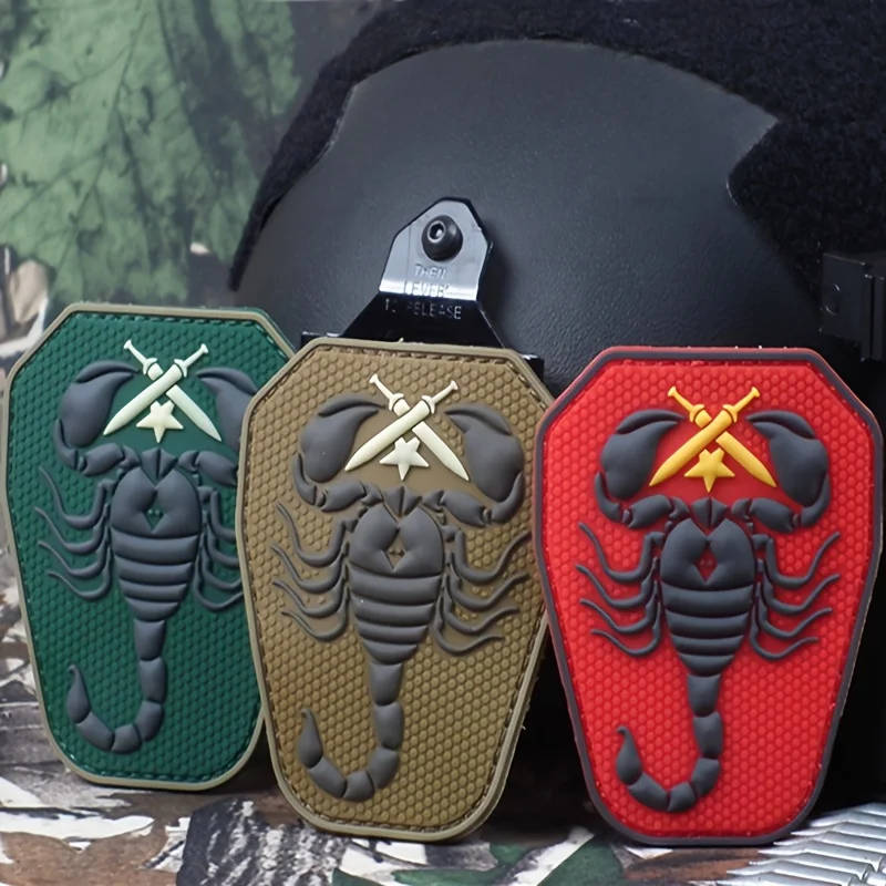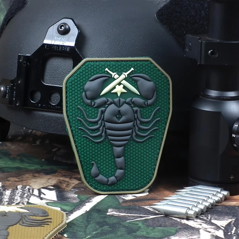 Parches Velcro Mochila TáCticos De Bordados Brazalete de unidad de escorpión de PVC, parche militar de Velcros, cierre de gancho y bucle, insignia de moral táctica para chaleco al aire libre, mochila Molle
