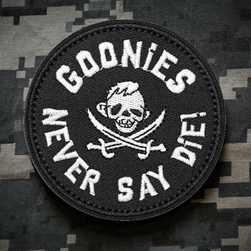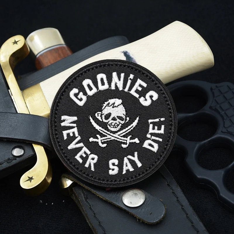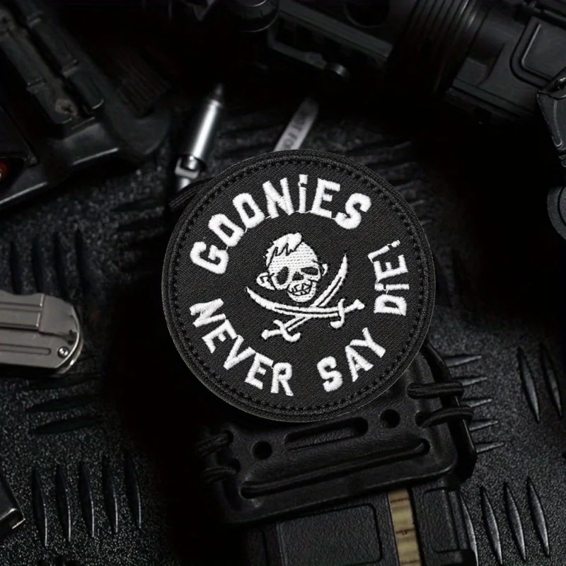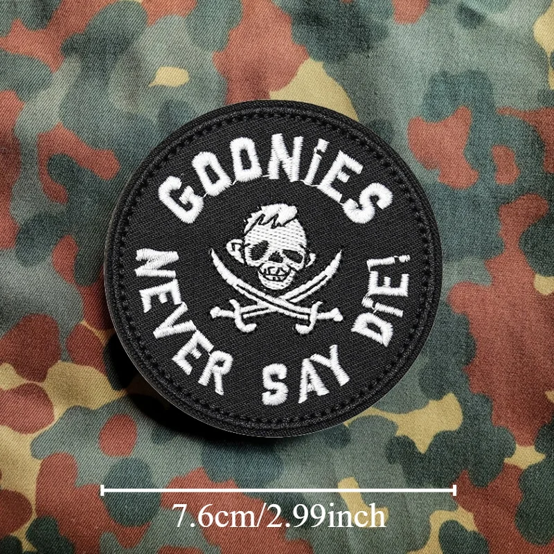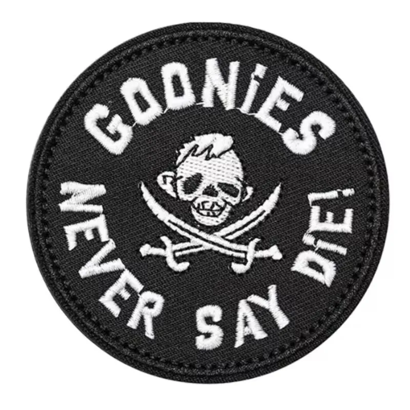 Parches Velcro Mochila TáCticos De Bordados Parche táctico bordado "Goonies Never Say Die", cierre de gancho y bucle de Velcros moral para equipo militar, mochilas, brazaletes