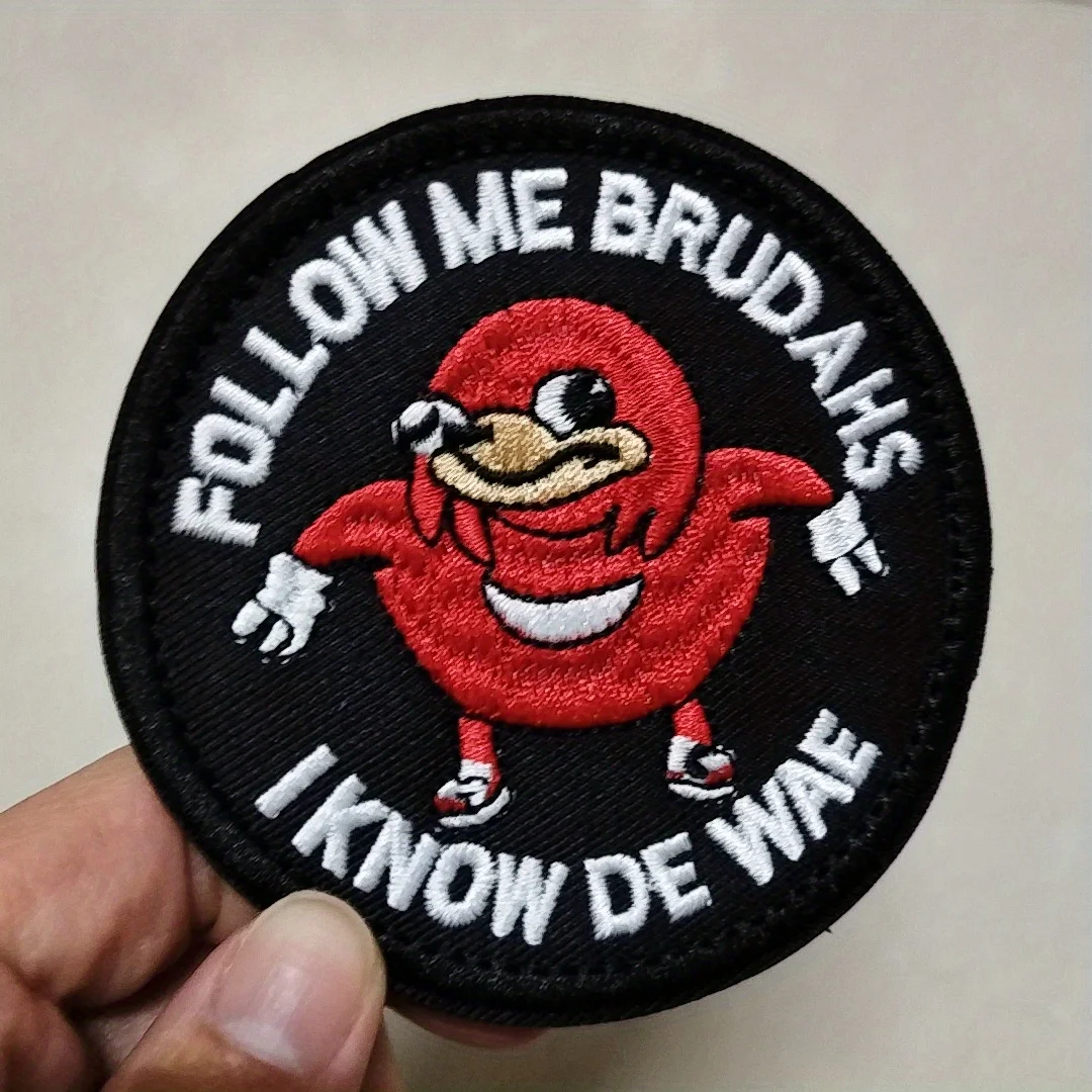 parches velcro mochila tácticos de bordados Parche táctico Morton Home-Ugandan Knuckles "Follow me negro divertido Meme Velcros parche aplique gancho y bucle para equipo militar, 1 ud.