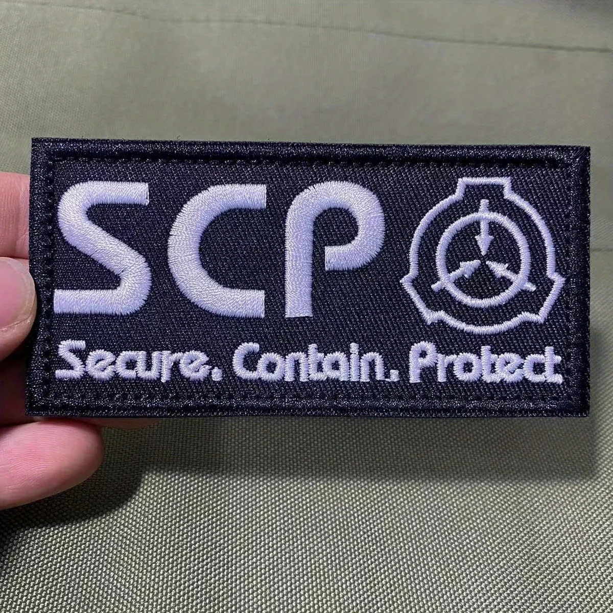 Parches Velcro Mochila TáCticos De Bordados Parche de Velcros bordado de moral táctica con logotipo de base SCP, pegatina de gancho y bucle militar, insignia para brazalete para chaqueta y mochila