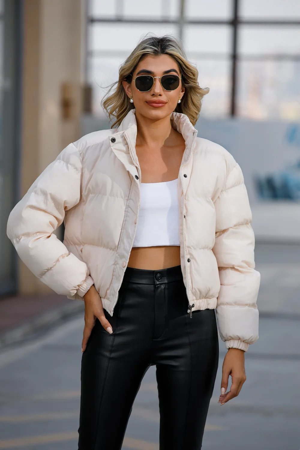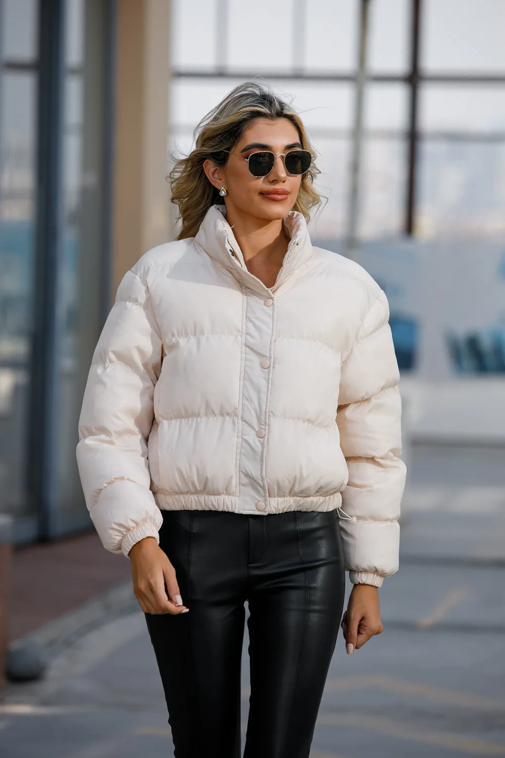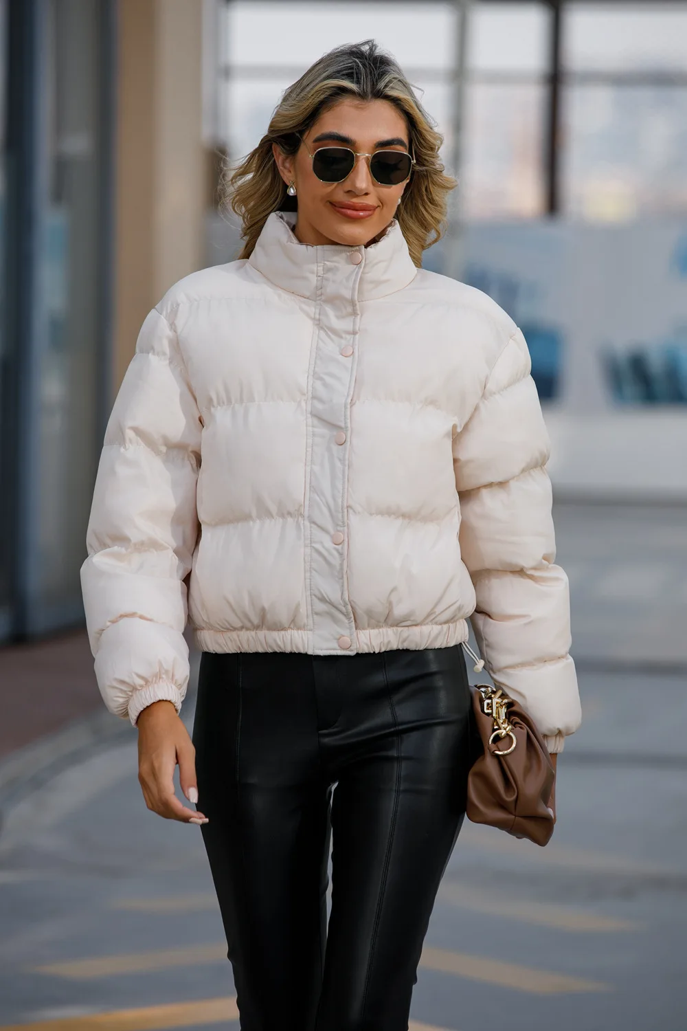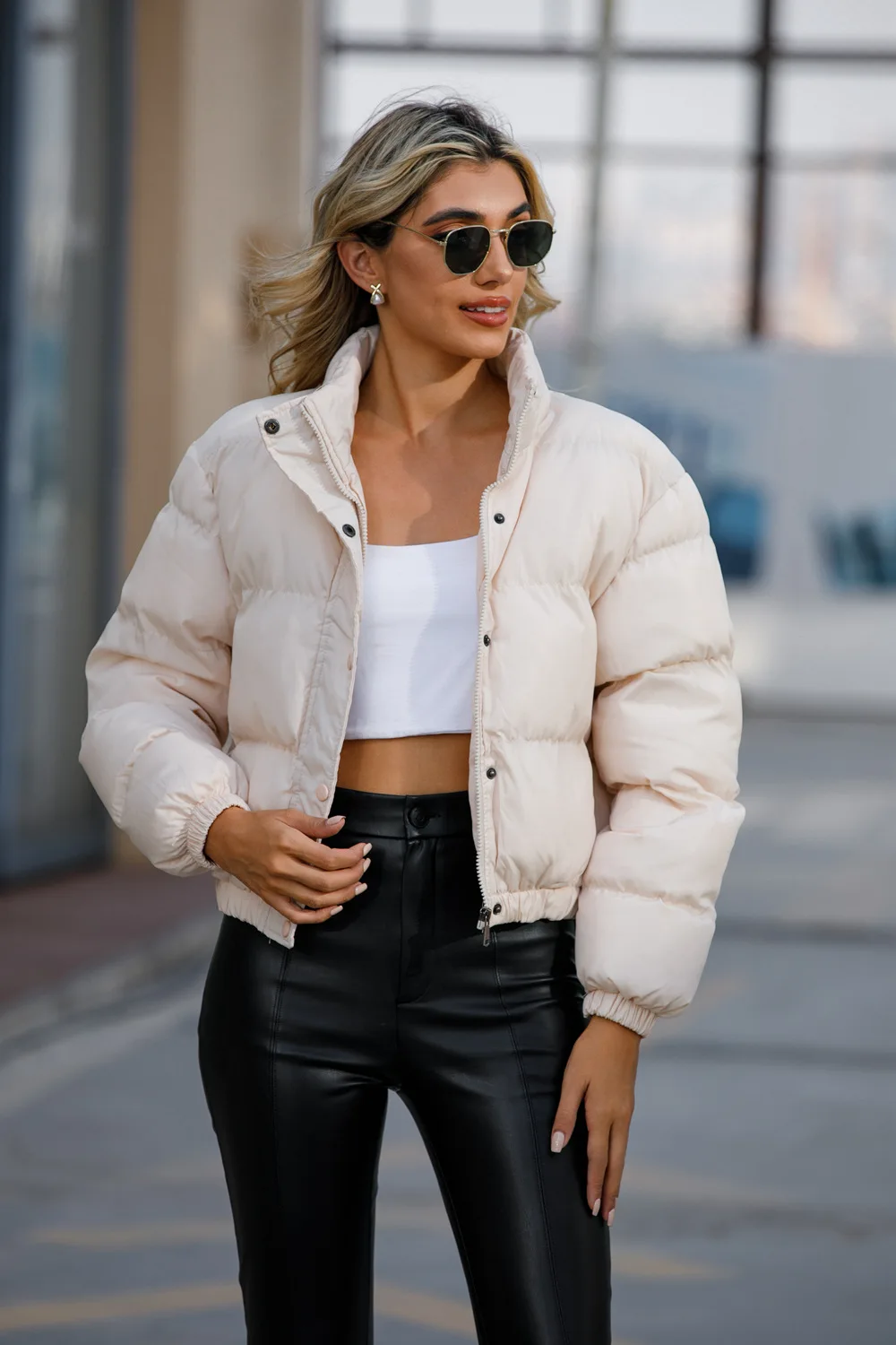 Parka de algodón de Color sólido para mujer, abrigo grueso de burbujas, chaqueta acolchada cálida, Tops cortos, Otoño e Invierno