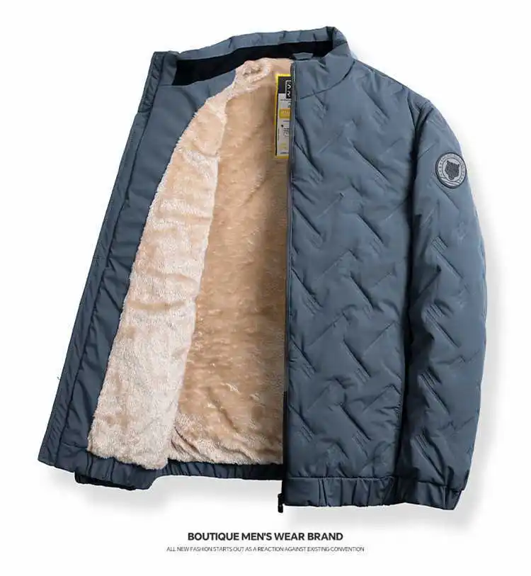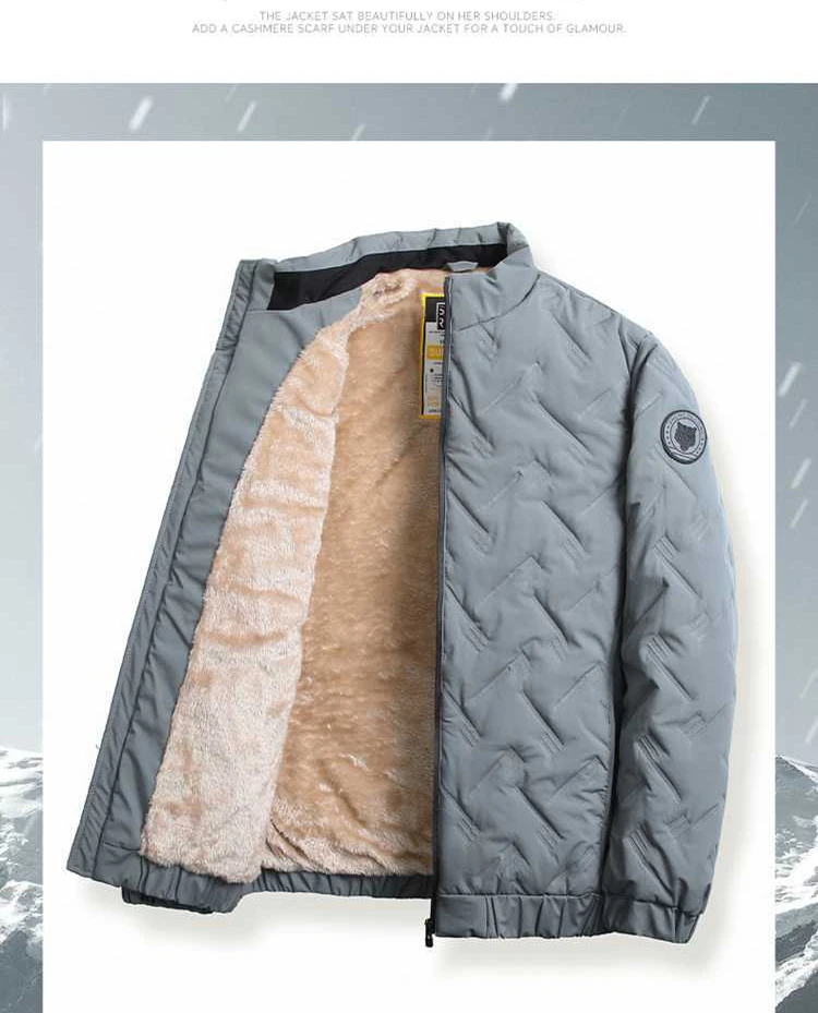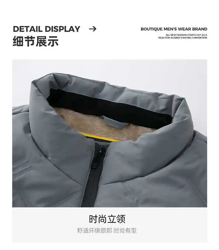 Parka cepillada de lana de cordero para hombre de invierno, chaqueta de moda informal con cremallera y cuello levantado, abrigo de esquí para montañismo deportivo al aire libre para hombre