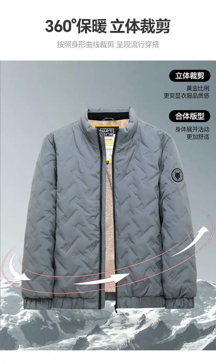Parka cepillada de lana de cordero para hombre, cuello levantado, cremallera, chaqueta informal de moda, deportes al aire libre, abrigo de esquí de montañismo, Invierno
