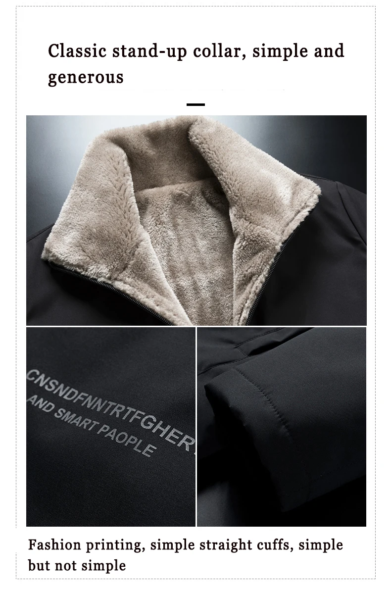 Parka para hombre, chaquetas de lana de lujo, cazadora gruesa y cálida, abrigo clásico con cuello levantado, Parkas de lana de invierno de diseñador de marca 5XL