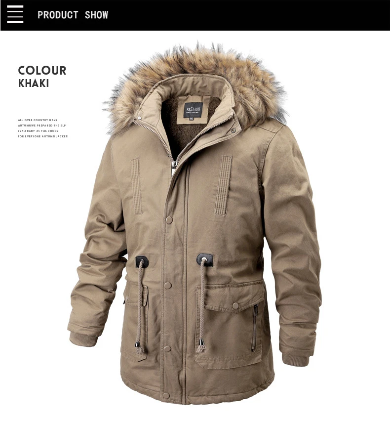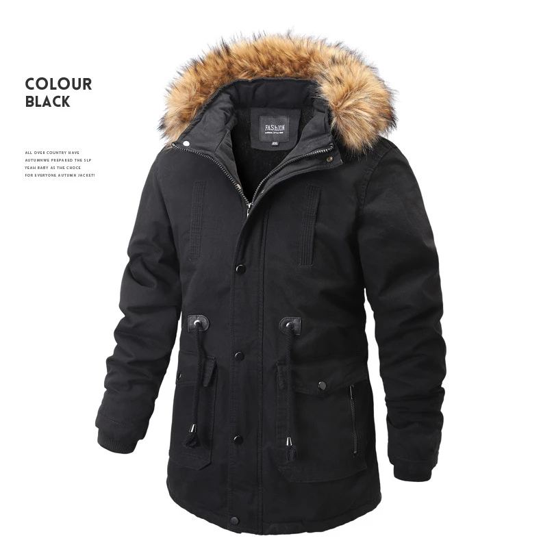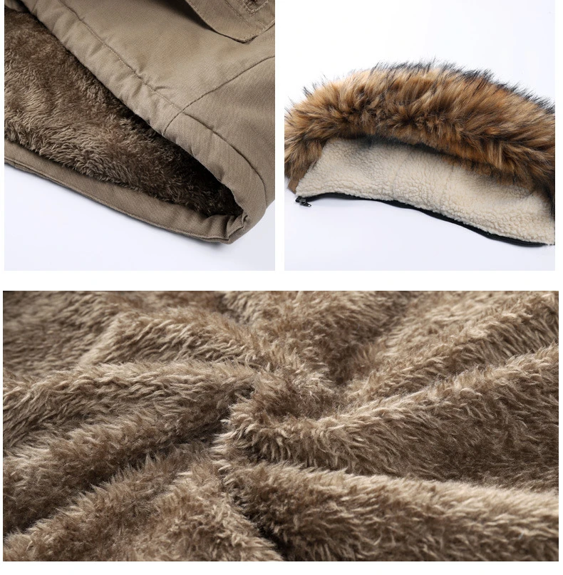 Parkas gruesas para hombre, chaquetas de lana con cuello de piel, Parka cálida a prueba de viento, ropa de invierno, 2022