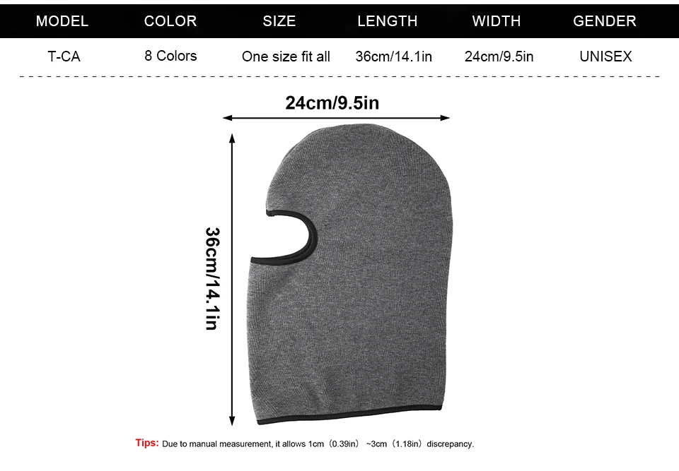 El paquete incluye: 1 pasamontañas * 1 máscara facial completa