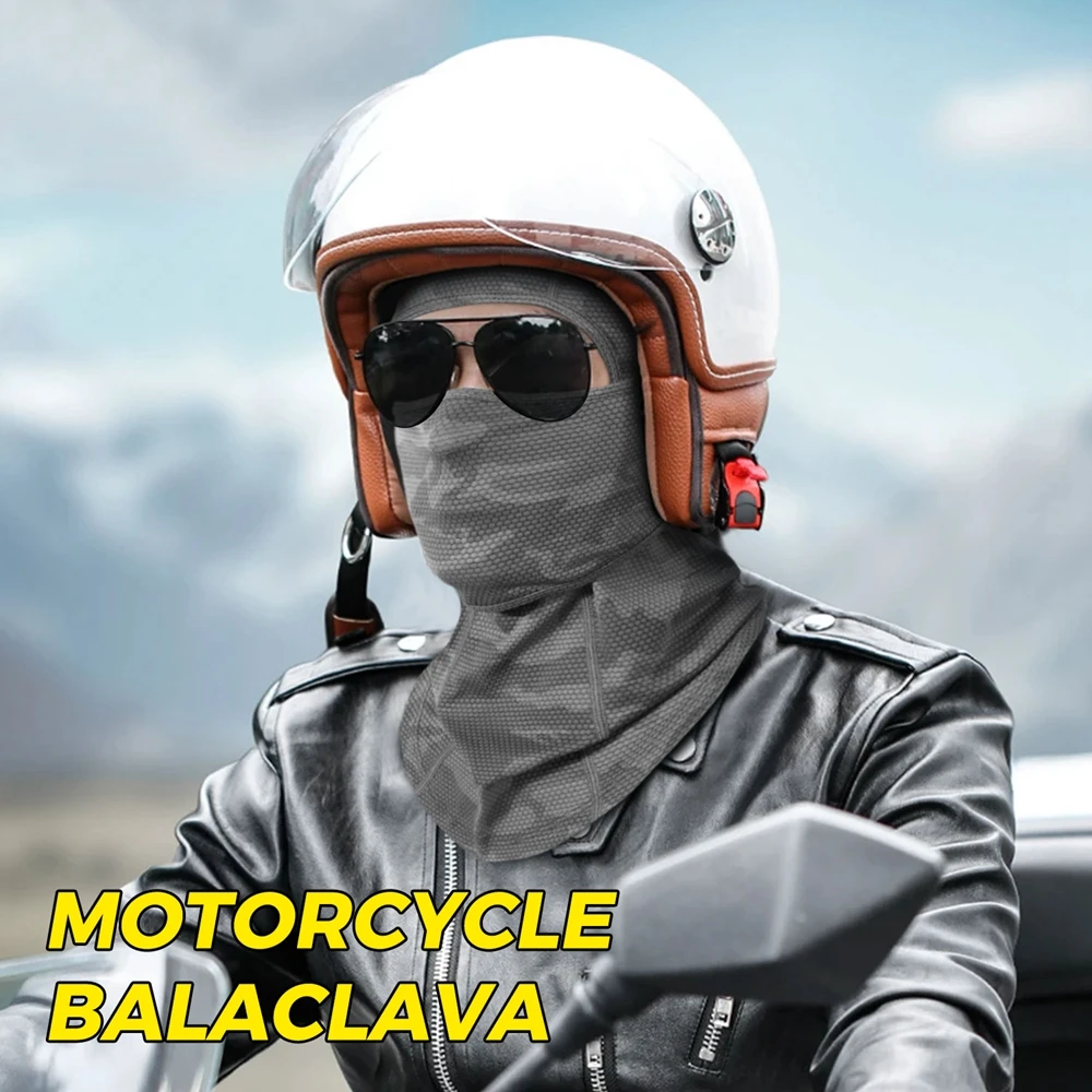 Esta funda facial de pasamontañas mantiene la piel de toda la cara y el cuello, excepto la piel alrededor de los ojos, ayudando a bloquear la rotura del polvo y los rayos UV.