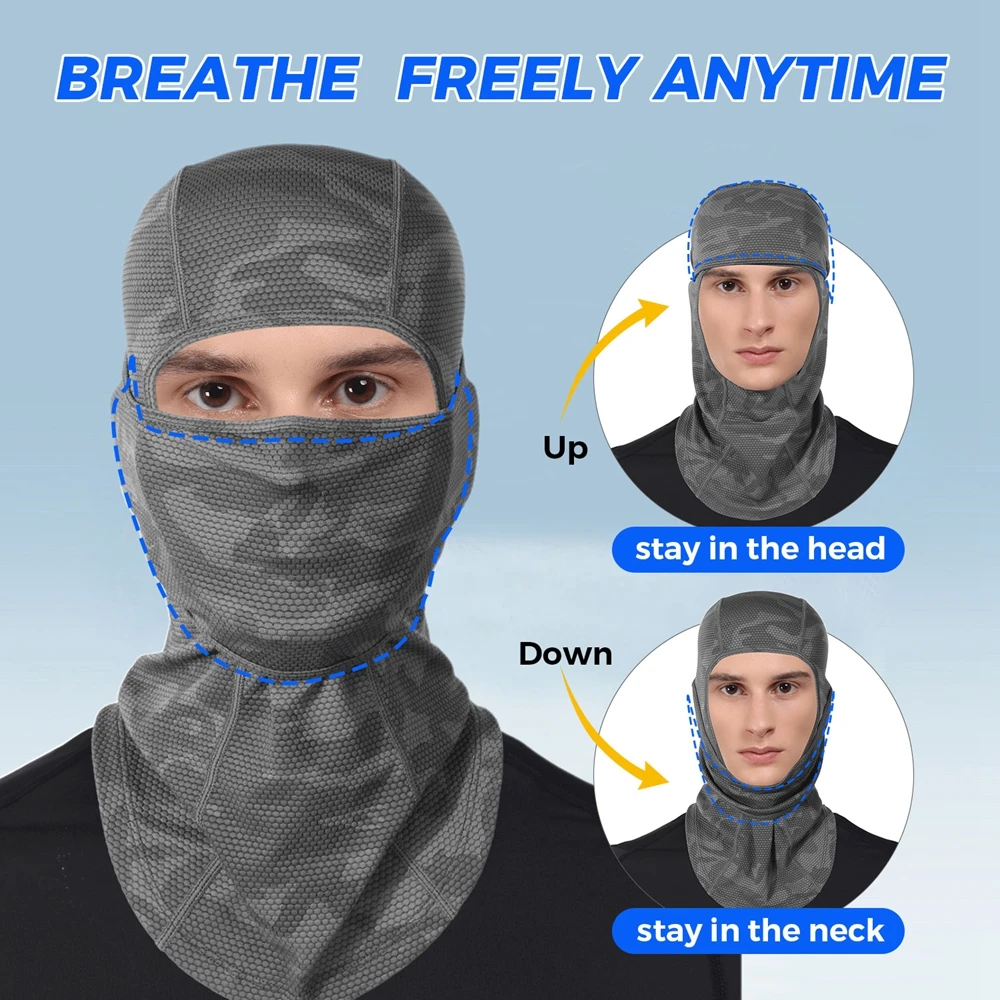 El diseño de malla transpirable con agujeros tiene una gran disipación. Pasamontañas para hombres, El verano puede absorber la humedad y secar rápidamente para el clima caluroso de verano. Fácil de respirar...