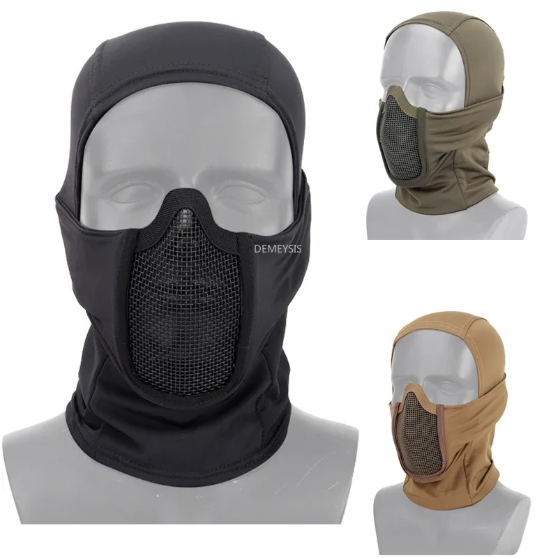 Pasamontañas táctico para exteriores, Máscara protectora de media cara con malla de acero para Airsoft, caza y Paintball