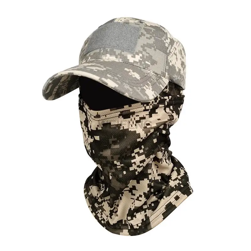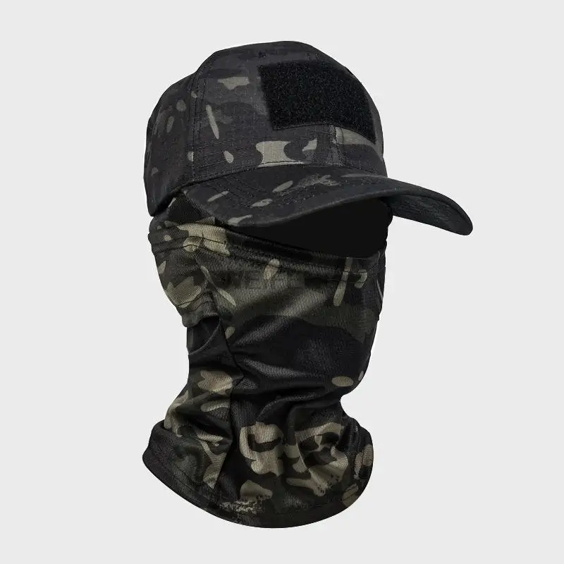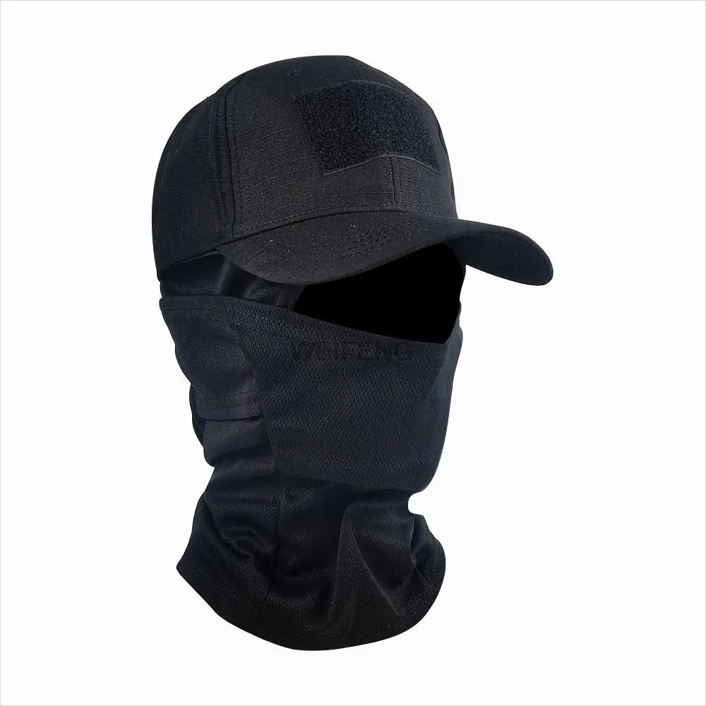 Nombre: máscara de protección solar al aire libre + conjunto de sombreros Color: negro, verde, bronceado, CP,BCP,MKBK,MKGR,MKTA ...... Circunferencia del sombrero: 55-61cm Material de la gorra de béisbol: 65% poliéster + 35% algodón UV400 Protección UV para exteriores Material de la máscara ligero, cómodo y transpirable, tela elástica, buena elasticidad, no apretado higroscópico y liberación de sudor Perfecto para deportes al aire libre de verano, ciclismo, camping, senderismo, escalada. Lista del paquete: 1 máscara de x 2 + 1 máscara de x 1, 1 sombrero de x.