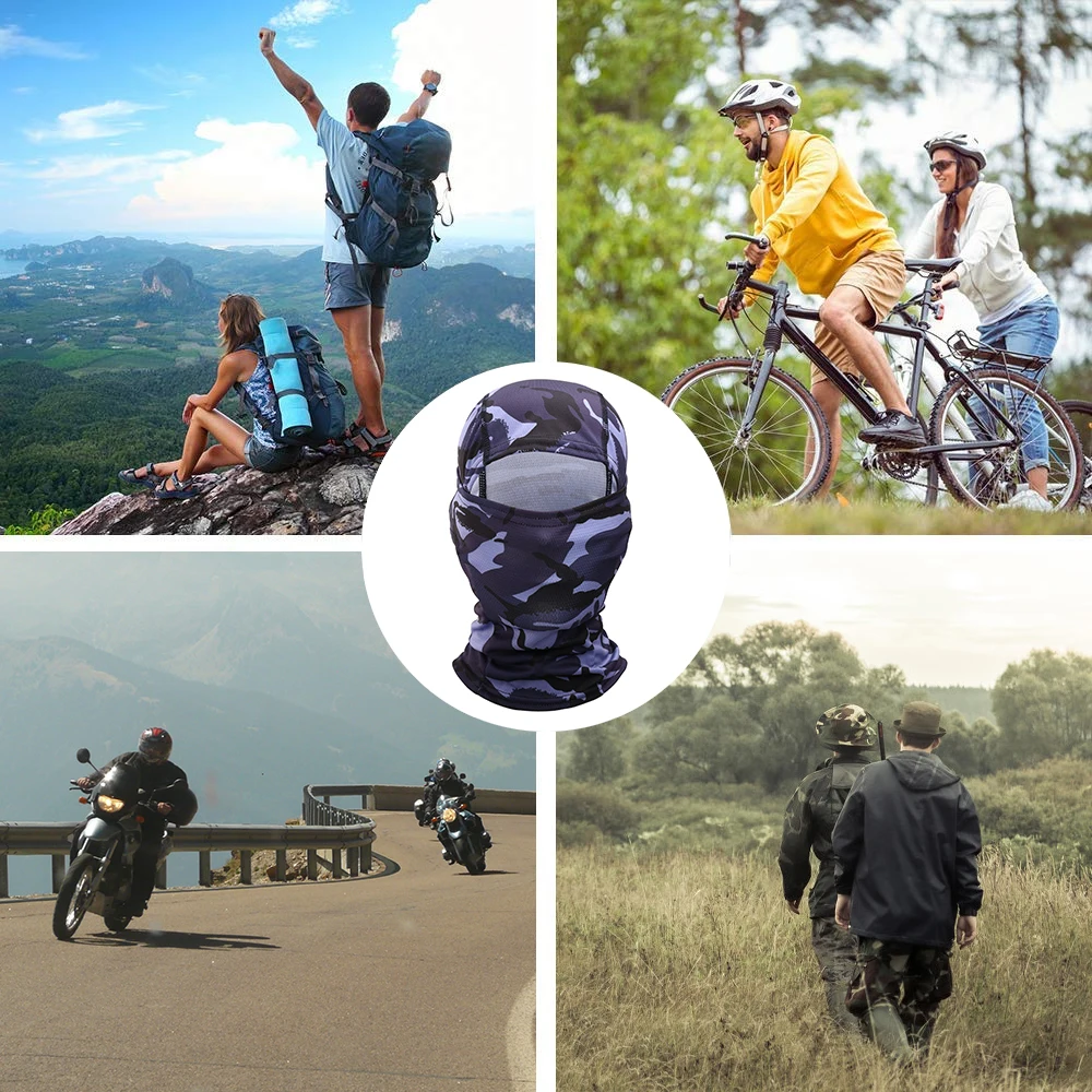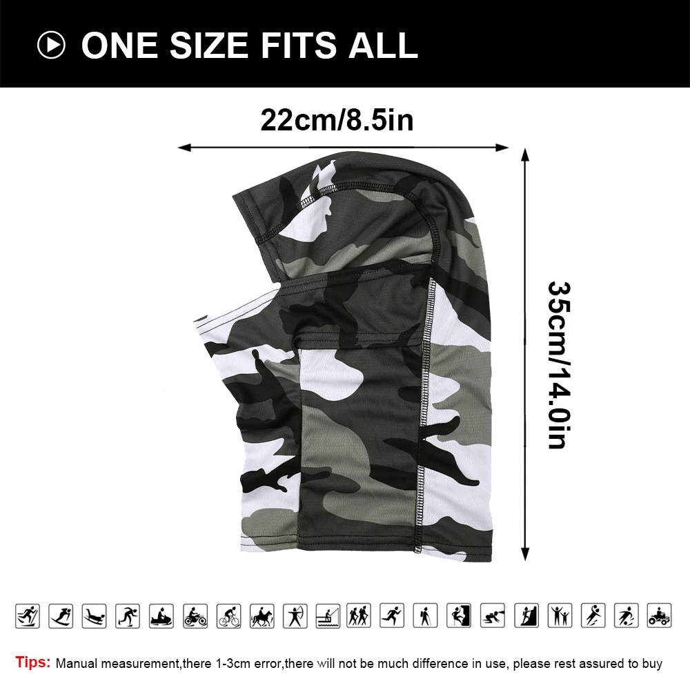 2. Característica transpirable: diseño delgado, cerca de su piel y puede respirar libremente. Ayuda a reducir el empañamiento con el casco puesto. Se puede usar solo o bajo cualquier tipo de casco. Pasamontañas táctico cubre la cabeza bloqueando el polvo, el sol UV o la nieve.