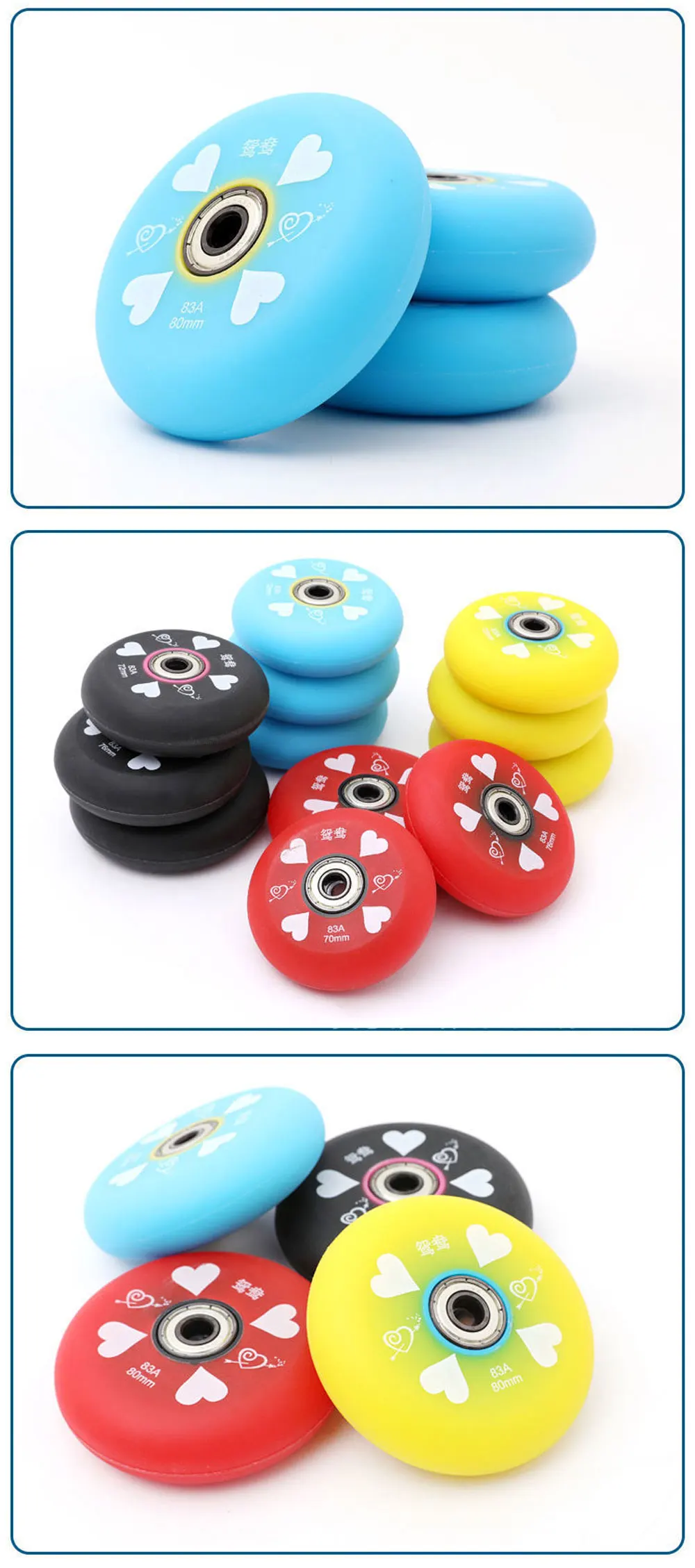 Patines de una sola fila, ruedas especiales de PU 83A, 62-80MM, resistentes al desgaste con rodamientos de ABEC-9, accesorios para patines AMB295