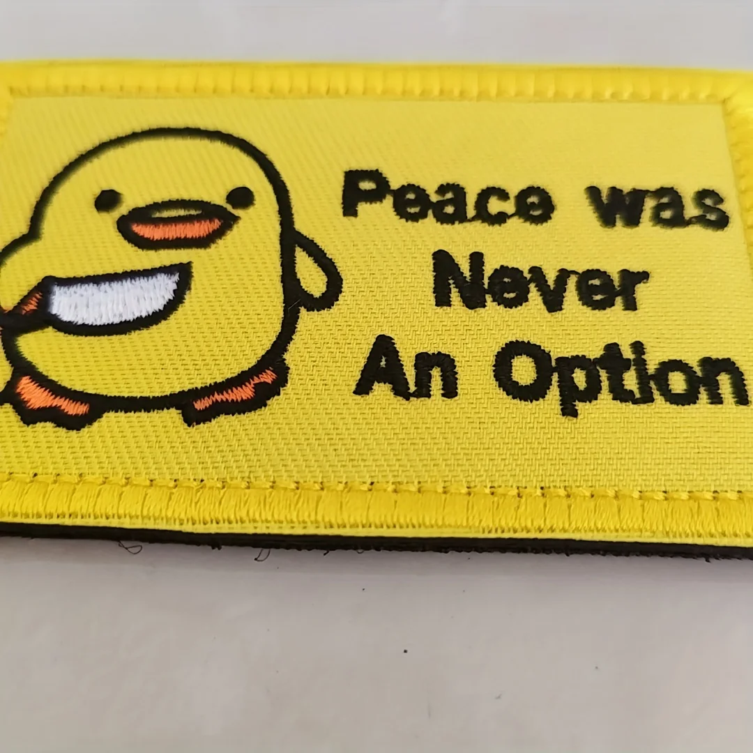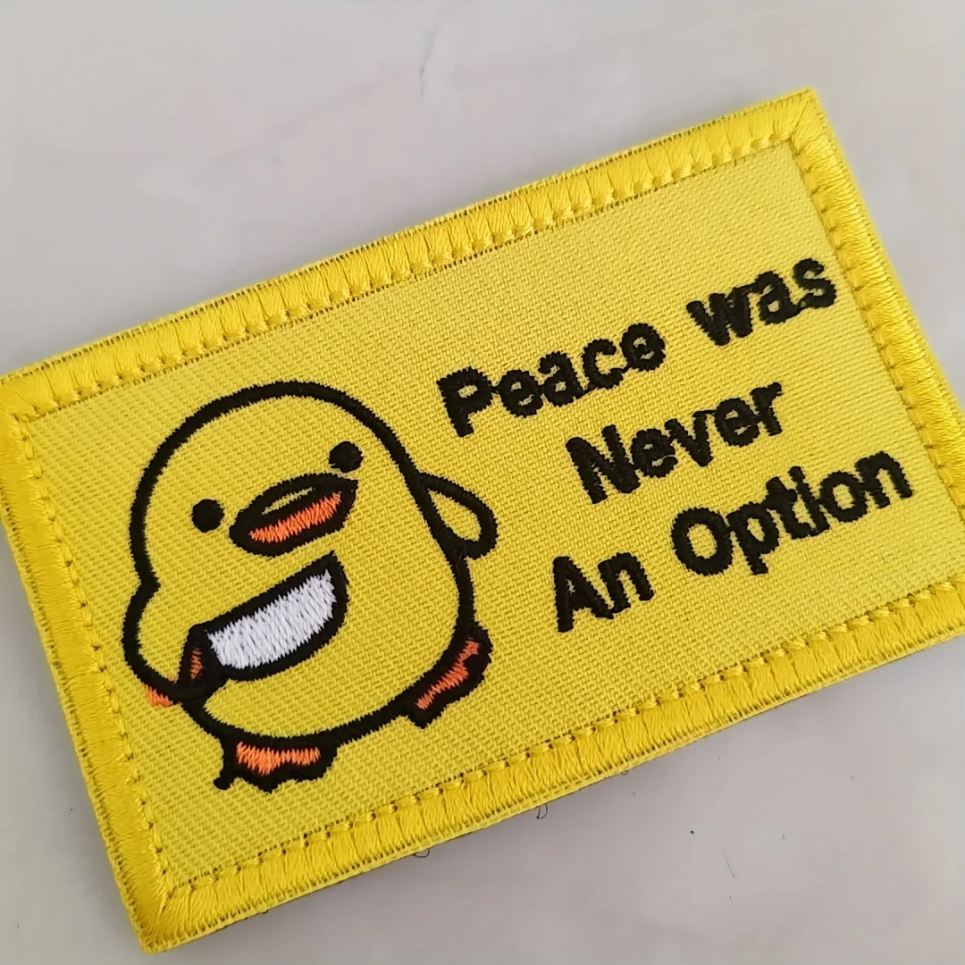 Diseño único: 1 pollito con cuchillo, la paz nunca era una opción de parches de gancho y bucle