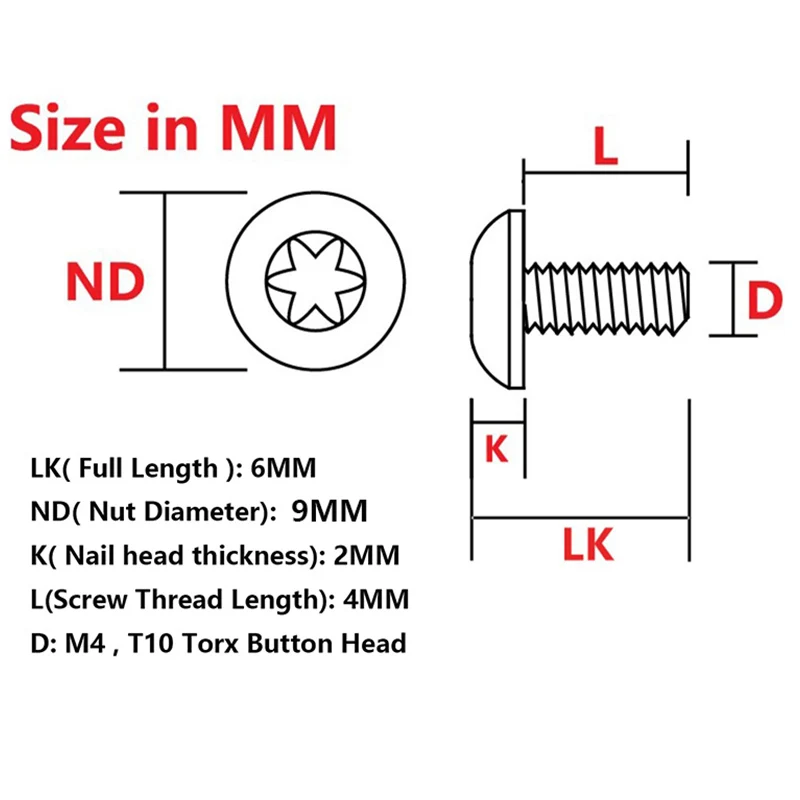 Rosca M4, cabezal de botón Torx T10
