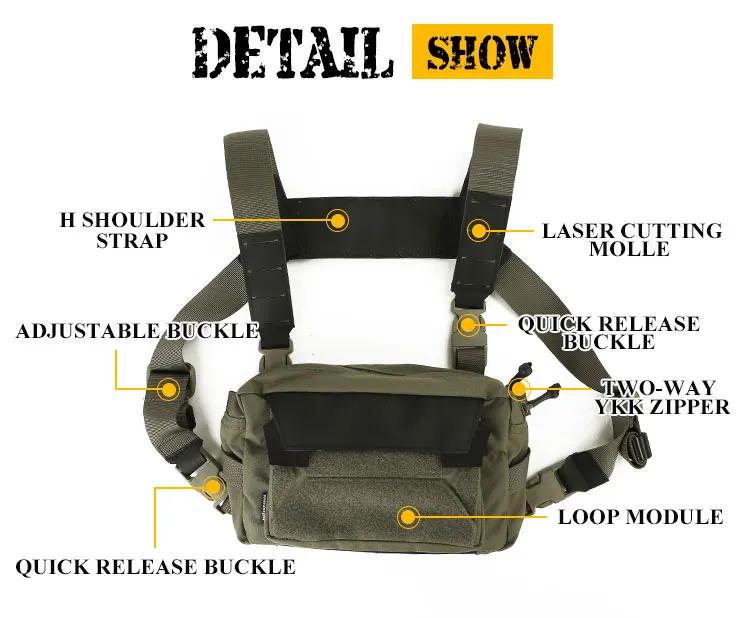 4.El diseño molle láser de hombro puede montar una subbolsa o una grabadora usada en el cuerpo.