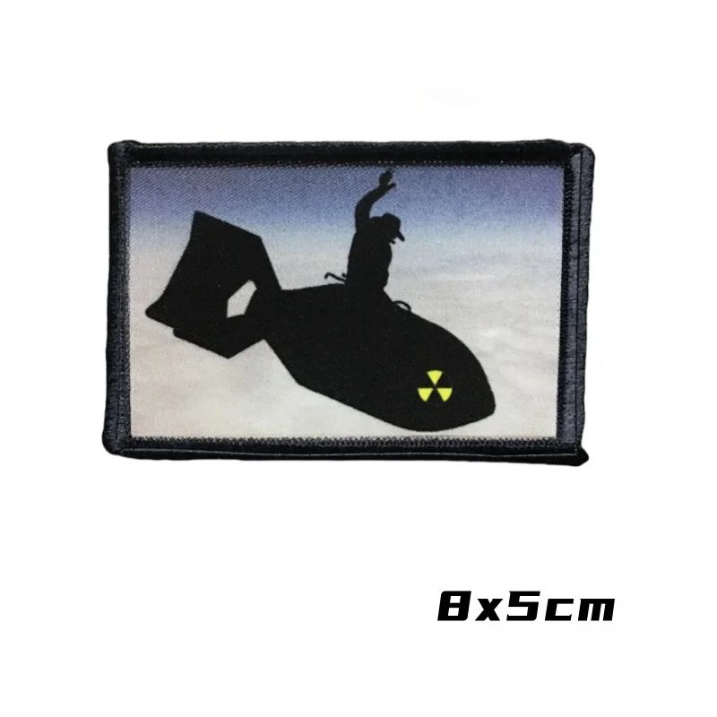 Atom Bomb Sticker "¡Bombas lejos!" Insignia de moral Imprimir Parches de gancho y bucle Mochila táctica Sombrero Accesorios