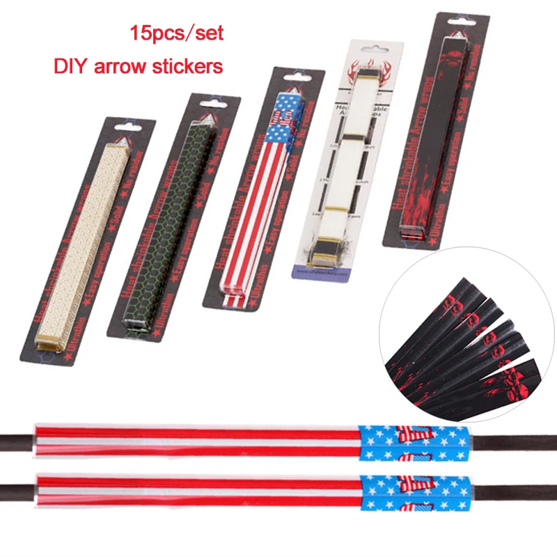 15 unids/set Universal tiro con arco Termocontraíble flecha envuelve pegatina flecha eje pegatina para DIY flecha eje caza tiro accesorio